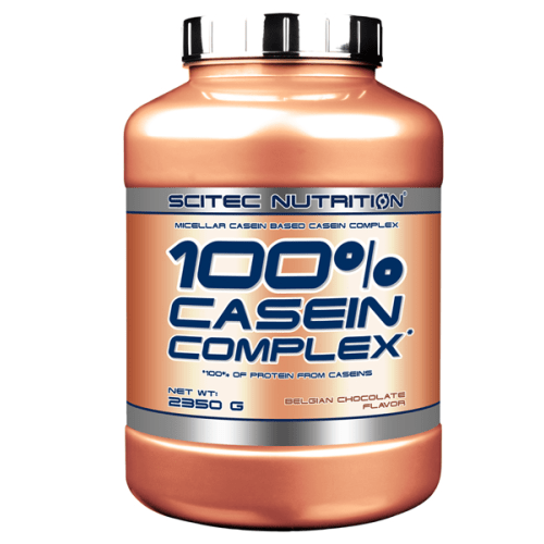 100% Casein Complex Pulver von Scitec Nutrition mit Belgische Schokolade Geschmack in der 2.35KG Packung. Scitec Nutrition – 100% Casein Complex Casein als Nachtprotein oder direkt nach dem Training – das langsam verdauliche Protein versorgt je Portion mit 22g hochwertigem Eiweiß; für den Muskelaufbau und die Regeneration. 100% Casein Complex von Scitec Nutrition – Vorteile: 22g Protein je Portion Milchprotein-Mischung mit langsam verdaulichem Casein mit Glutamin und Taurin angereichert unter 1g Fett und unter 3g Kohlenhydrate je Portion Was beinhaltet 100% Casein Complex? Das Eiweißpulver von Scitec enthält eine Milchprotein-Mischung aus mizellarem Casein-Konzentrat und Calcium-Caseinat. Je Portion sind 22g Protein enthalten, zudem wurde eine Aminosäurenmatrix mit L-Glutamin und Taurin und ein Verdauungsenzymgemisch mit Bromelain und Papain beigemischt. Mit unter 1g Fett und weniger als 3g Kohlenhydraten weist jeder Shake (mit Wasser gemischt) nur etwas mehr als 100kcal auf. Gesüßt ist das Shakepuver mit Süßstoff. Warum 100% Casein Complex? Casein zählt zu den langsam verdaulichen Proteinen und wird direkt aus Milch hergestellt. Es steht dem Körper nicht direkt, sondern auf lange Sicht zur Verfügung, da es deutlich langsamer verarbeitet wird, als klassisches Wheyprotein. Damit ist Casein ein ideales Protein für die lange Nachtphase und zur Nutzung am Abend vor dem Schlafengehen. Alle essentiellen Aminosäuren, u.a. die für den Muskelaufbau besonders wichtigen BCAA, sind enthalten. Scitec hat zusätzlich eine weitere Portion L-Glutamin, die am häufigsten vorkommende Aminosäure im menschlichen Körper, und Taurin zugefügt. Zudem wurde das Pulver mit Bromelain und Papain, zwei Verdauungsenzymen, angereichert.Das Pulver ist in mehreren, gut löslichen Geschmacksrichtungen verfügbar. Jeder Shake, mit Wasser gemischt, hat nur wenig mehr als 100kcal, kann also auch innerhalb einer Diät verwendet werden. Wie wird 100% Casein Complex verwendet und wer nutzt ihn? Sportler der verschiedensten Sportarten können einen 100% Casein Complex Shake am Abend oder nach dem Training verwenden. Nach dem Training eignet sich der Shake, wenn Du über den Tag genug Eiweiß zur Unterstützung der Regeneration aufgenommen hast. Durch die langsame Verarbeitung, steht dem Körper das Eiweiß nicht direkt zur Nutzung zur Verfügung. Daher nutzen die meisten Athleten einen Casein-Shake eher vor dem Schlafengehen für die NachtphaseFür 1 Portion mische 30g Pulver mit 350ml Wasser oder Milch in einem Shaker. Kräftig schütteln und direkt nach Herstellung trinken. 100% Casein Complex enthält wertvolle BCAA und viele andere Aminosäuren.
