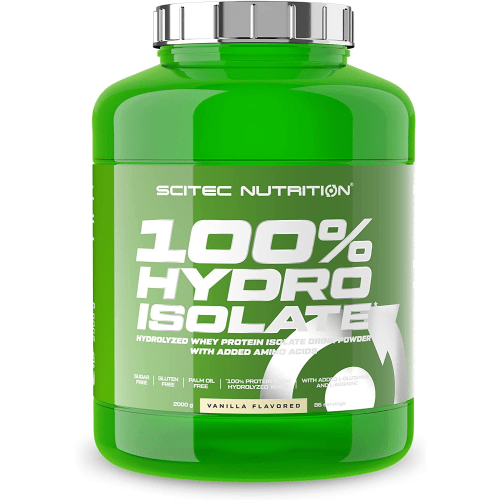 100% Hydro Isolate Pulver von Scitec Nutrition mit Vanille Geschmack in der 2KG Packung. 100% Hydro Isolate von Scitec Nutrition 100% Hydro Isolate von Scitec Nutrition enthält 100% hydrolysiertes Molkenprotein. Die Hydrolyse sorgt dafür, dass das Protein vom Stoffwechsel leichter absorbiert werden kann als beispielsweise normales Molkenprotein. Zusätzlich enthält das Pulver noch Glutamin und Arginin und ist ohne Zusatz von Zucker. Allergene: Enthält Soja, Milcherzeugnisse. Kann Spuren von Eier, Erdnüsse, Schalenfrüchte, Sellerie, Fisch, Krebstiere und Weichtiere enthalten. Verzehrempfehlung: Mische eine Portion (23 g, 2/3 Messlöffel) 100% Hydro Isolat Pulver mit 250 ml kaltem Wasser. An Trainingstagen nach dem Training, an Ruhetagen zu einem beliebigen Zeitpunkt verzehren. 100% hydrolysiertes Molkenprotein.