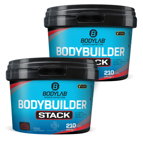 2 x Bodybuilder Stack Kapseln von Bodylab24. Bodybuilder Stack Kapseln (vegan) von Bodylab jetzt direkt im Doppelpack bestellen. Ein Vitamin- und Mineralstoff-Supplement mit einem umfangreichen Mikronährstoff-Mix speziell für hart und intensiv trainierende Sportler. Enthalten sind neben Zink, Magnesium, Kupfer und weiteren Mineralstoffen auch Vitamin C, D3 und die wichtigen B-Vitamine.