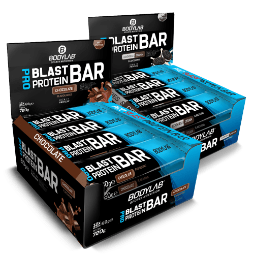 2 x Pro Blast Protein Bar Riegel von Bodylab24. Bodylab – Dein Experte für Muskelaufbau, Fitness, Abnehmen und gesunde Ernährung. Wir sind der führende Online Shop für Supplements und Sportnahrung. Egal ob Proteinpulver für Deinen Eiweißshake oder Proteinriegel: Wenn Du Eiweiß kaufen willst, findest Du in unserem Protein Shop alles was das Herz begehrt. Mit Eiweißprodukten unserer Eigenmarke Bodylab24 erhältst Du höchste Qualität zu unschlagbaren Preisen. Natürlich findest Du bei Bodylab24 auch eine umfangreiche Auswahl hervorragender Sportnahrung anderer Hersteller. Sämtliche angebotenen Produkte mussten uns vor der Listung von ihrer einwandfreien und guten Qualität sowie einem fairen Preisleistungsverhältnis überzeugen. Unser Pro Blast Protein Bar (60 g) in mehreren, leckeren Geschmacksvarianten – jeweils mit knusprigen Crispies aus Soja, Schokoladenüberzug und Karamellfüllung. Die enthaltene Proteinmischung liefert je Riegel 20 g Eiweiß.Ideal für die unkomplizierte Proteinversorgung zwischendurch. BITTE BEACHTE: Das Produkt wird ungekühlt geliefert und kann deshalb bei hohen Außentemperaturen schmelzen.