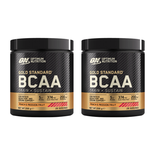 2x Gold Standard BCAA Train & Sustain Pulver von Optimum Nutrition. Intra-Workout mit BCAA im Verhältnis 2:1:1. Gold Standard BCAA Train&Sustain von Optimum Nutrition Während des Work-outs profitiert der Körper von einer speziell zusammengestellten Nährstoffzufuhr. Gold Standard BCAA Train&Sustain bietet einen hochwertigen Mix aus Aminosäuren, die der Körper nicht selbst produzieren kann, sowie Magnesium und Vitamin C. Das Getränk füllt die durchs Training verbrauchten Reserven wieder auf und schmeckt dabei angenehm leicht und lecker. Anwendungstipps/Dosierung Für 1 Portion Gold Standard BCAA Train&Sustain 2 gehäufte Portionslöffel (ca. 9,5g Pulver) in 350ml kaltes Wasser einrühren oder die Zutaten miteinander verschütteln. Idealerweise sollte das Getränk während des Trainings verzehrt werden.