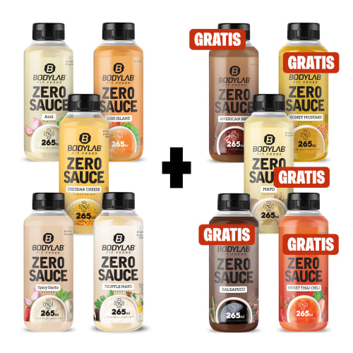 5 + 5 Zero Saucen Aktion Bodylab24. Bodylab – Dein Experte für Muskelaufbau, Fitness, Abnehmen und gesunde Ernährung. Wir sind der führende Online Shop für Supplements und Sportnahrung. Egal ob Proteinpulver für Deinen Eiweißshake oder Proteinriegel: Wenn Du Eiweiß kaufen willst, findest Du in unserem Protein Shop alles was das Herz begehrt. Mit Eiweißprodukten unserer Eigenmarke Bodylab24 erhältst Du höchste Qualität zu unschlagbaren Preisen. Natürlich findest Du bei Bodylab24 auch eine umfangreiche Auswahl hervorragender Sportnahrung anderer Hersteller. Sämtliche angebotenen Produkte mussten uns vor der Listung von ihrer einwandfreien und guten Qualität sowie einem fairen Preisleistungsverhältnis überzeugen. Du bist großer Fan unserer Zero Saucen oder möchtest diese jetzt zum ersten Mal probieren? In beiden Fällen ist dieser 5 + 5 Zero Saucen Deal ideal für dich. Die Kalorien-, zucker- und fettreduzierten – oder fettfreien – Saucen schmecken unfassbar lecker und sind die ideale Ergänzung in deiner Fitness-Küche. ACHTUNG: Nur für kurze Zeit erhältst du beim Kauf von 5 Zero Saucen, 5 weitere Zero Saucen deiner Wahl GRATIS. Also schlag jetzt zu, bevor deine Lieblingssaucen vergriffen sind.