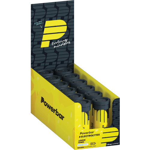 5 Electrolytes Sports Drink Powerbar mit Lemon Tonic Boost Geschmack in der 0.504KG Packung. Was ist 5 Electolytes Sports Drink von Powerbar und wie wirkt es? 5 Electolytes Sports Drink von Powerbar ist so konzipiert, dass es genau das Verhältnis von Natrium, Chlorid, Kalium, Magnesium und Kalzium, das der Mensch durchschnittlich beim Sport verliert, kompensieren kann, indem es dem Körper wieder zugeführt wird. Das leckere Sportgetränk kann somit den Mineralienverlust ausgleichen. Zudem ist 5 Electolytes Sports Drink von Powerbar ideal für alle schweißtreibenden Momente, in denen keine Kalorien und Kohlenhydrate benötigt werden. Es empfiehlt sich, 1 Tablette 5 Electolytes Sports Drink von Powerbar in 500-750ml Wasser aufzulösen. Trinke 30 Minuten vor dem Sport 200-300ml des leckeren Drinks und während der Sporteinheit alle 15 Minuten 100-150ml. Erreiche neue Ziele!