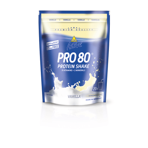 Active Pro 80 Pulver von Inkospor mit Vanilla Geschmack in der 0.5KG Packung. Was ist INKOSPOR Active Pro 80 und wie wirkt es? Inkospor Active Pro 80 ist ein Eiweißshake, welcher wichtige Nährstoffe für Deinen Sport liefert. Pro 80 besteht aus 80% Eiweiß aus den Komponenten Milch, Molke und Ei, die eine hohe biologische Wertigkeit haben und Dich optimal mit Eiweiß versorgen. Außerdem liefert das Protein wichtige Vitamine und Mineralien, die Deinen (Eiweiß-)Stoffwechsel optimieren und Deine Trainingsverluste ausgleichen. Der Shake enthält kaum Fett, Cholesterin und Purine Geeignet für Sportliebhaber, die ihre Fitness-, Figur- und ihr Muskeltraining gezielt ergänzen wollen. 1-2 Portionen pro Tag, besonders empfehlenswert nach dem Training und als Zwischenmahlzeit. 25g in 250ml fettarme Milch oder Wasser geben und mit einem elektrischen Mixer oder Shaker aufschlagen. Ideal für Body Shaping & Muscle Definition!