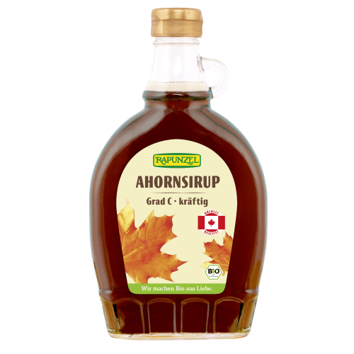Ahornsirup Grad C Bio Rapunzel. Die würzige Süße des Ahorn! Eco control number: CA-ORG-006 Ahornsirup Grad C von Rapunzel wird besonders spät im Jahr aus dem Saft wildwachsender Ahornbäume in Kanada gewonnen und nach kanadischen Qualitätsstandards gradiert. Er zeichnet sich durch seine dunkle Färbung und seinen kräftigen, würzigen Geschmack aus. Als reines Naturprodukt stammt er aus biologisch-dynamischem Anbau und wird ohne den Einsatz von chemischen Hilfsmitteln produziert.