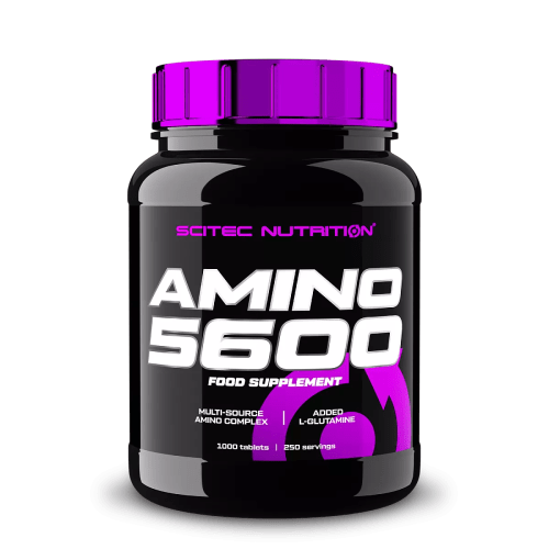 Amino 5600 Tabletten von Scitec Nutrition. Scitec Nutrition – BCAA 5600 Das komplexe Aminosäurensupplement mit allen wichtigen Aminosäuren. Amino 5600 von Scitec Nutrition – Vorteile: umfassendes Aminosäurenprofil hergestellt aus hochwertigem Molkenprotein mit allen essentiellen Aminosäuren hohe biologische Wertigkeit Was beinhalten BCAA 5600 Tabletten? Hauptbestandteil der Tabletten ist hydrolysiertes Molkenprotein, das alle wichtigen Aminosäuren liefert, darunter mehr als 1500mg essentielle Aminosäuren (EAA) und darin enthalten 766mg BCAA. Neben dem im Molkenprotein enthaltenen Glutamin wurde diese Aminosäure auch noch zusätzlich zugefügt. Allgemeine Funktion und Wirkungsweise von Aminosäuren Aminosäuren sind die kleinsten Proteinbausteine und damit direkt am Muskelaufbau und -erhalt beteiligt. Sie unterscheiden sich in essentielle (lebensnotwendige), semi-essentielle und nicht-essentielle Aminosäuren und werden zum Teil vom Körper selbst hergestellt oder müssen über die Nahrung oder Nahrungsergänzungsmittel aufgenommen werden.Glutamin gehört dabei zu den am häufigsten vorkommenden Aminosäuren in der Skelettmuskulatur. Es ist am normal funktionierenden Immunsystem ebenso beteiligt, wie an der Verringerung von Muskelermüdung und wirkt als Milchsäurepuffer einer Übersäuerung des Muskels entgegen.Die BCAA sind in besonderem Maße am Aufbau und Erhalt von Muskulatur und an der Proteinsynthese beteiligt. Der Vorteil einer Aminosäurenergänzung ist, dass der Körper die Proteinbausteine sehr schnell verwerten kann. Er muss nicht erst komplexe Eiweißmoleküle aufspalten, sondern kann die Aminosäuren direkt verwerten. Warum BCAA 5600 Tabletten von Scitec Nutrition? Die BCAA 5600 Tabletten versorgen Dich mit einer Vielzahl an wichtigen Aminosäuren zum Muskelaufbau, -erhalt und für eine gute und schnelle Regeneration. Es ist ideal in der Anwendung als zusätzliche Eiweißversorgung und kann vor, nach dem Training oder vor dem Schlafengehen verwendet werden. Zahlreiche Sportler nutzen BCAA 5600 Tabletten als Zusatz zu ihren normalen Proteinsupplements z.B. in Muskelaufbauphasen oder bei starken körperlichen Belastungen. Wie und von wem werden die BCAA 5600 Tabletten verwendet? Die BCAA 5600 Tabletten können mit der 4 Tabletten-Portion vor, nach dem Training oder vor dem Schlafengehen von Athleten aller Sportarten verwendet werden. Sie können zur Unterstützung oder Anreicherung der normalen Eiweißversorgung eingenommen werden. Komplexes Supplement mit allen essentiellen und wichtigen Aminosäuren.