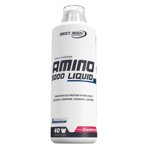 Amino Liquid 5000 Cranberry Best Body Nutrition mit Cranberry Geschmack in der 1L Packung. Was ist Amino Liquid von Best Body und wie wirkt es? Amino Liquid von Best Body ist ein konzentriertes Aminosäureprodukt in Liquid-Form. L-Isoleucin, L-Valine und L-Lysin, dazu hochwirksame Whey Proteine, Creatin und die für Sportler so notwendigen B-Vitamine können Dir helfen, Dein Muskelwachstum zu unterstützen. Amino Liquid von Best Body wurde insbesondere für Kraftsportler, Athleten, Bodybuilder und Power-Lifter entwickelt, die es gewohnt sind, von sich allerhöchste Trainings- und Wettkampfleistungen zu erwarten. Für beste Ergebnisse nimm 1-mal täglich 1 Portionierer voll Amino Liquid von Best Body vor dem Training. Verzehrempfehlung: 25 ml pro Tag. Beste Aminosäuren-Matrix in flüssiger Form!