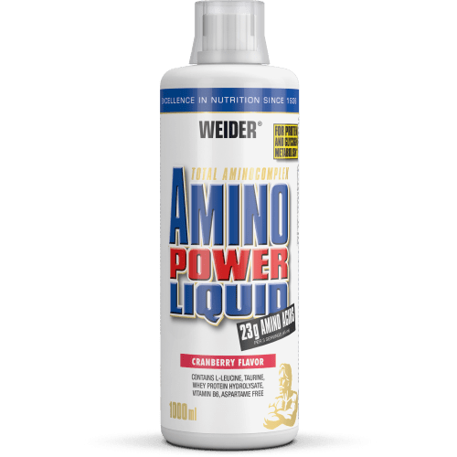 Amino Power Liquid Weider mit Cranberry Geschmack in der 1L Packung. Weider – Amino Power Liquid Hochqualitative Aminosäuren in flüssiger Form zum direkten Verzehr und mit Vitamin B6 angereichert. Amino Power Liquid von Weider – Vorteile: hochdosierte Aminosäuren umfangreiches Aminosäurenprofil enthält alle BCAA + EAA mit Vitamin B6 und Taurin angereichert leckere Geschmacksrichtungen verfügbar Was beinhaltet Amino Power Liquid? Hauptbestandteil des Amino Power Liquid ist Proteinhydrolysat-Konzentrat auf Wasserbasis. Zusätzlich sind freie Aminosäuren zugesetzt und das Liquid wurde zusätzlich mit Vitamin B6 angereichert. Es ist sowohl Zucker, als auch Süßungsmittel enthalten. Warum Amino Power Liquid? Besonders in Muskel- und Kraftaufbauphasen benötigt der Körper eine ausreichende Versorgung mit wertvollem Protein. In Kombination mit einer gesunden Ernährung und einem entsprechenden Sportprogramm trägt diese zum Erfolg entscheidend bei. Aminosäuren sind die kleinsten Eiweißbausteine und stehen dem Körper besonders schnell zur Nutzung zur Verfügung. Eine ausreichende Versorgung rund ums Training begünstigt den Trainingserfolg, daher sollte Amino Power Liquid auch vor und nach dem Training konsumiert werden, da es reichlich Aminosäuren enthält. Das Liquid ist direkt verzehrfertig und wurde mit Vitamin B6 angereichert, das am normalen Eiweiß- und Glykogenstoffwechsel beteiligt ist. Verschiedene Geschmacksrichtungen sind bei Weider im Angebot. Wie wird Amino Power Liquid verwendet? Du kannst am Tag 1-3 Portionen zu je 15ml trinken. An Trainingstagen vorzugsweise rund ums Training, dazu 15ml vor und 2 x 15ml nach dem Training konsumieren. Amino-Power für deinen Trainingsboost!