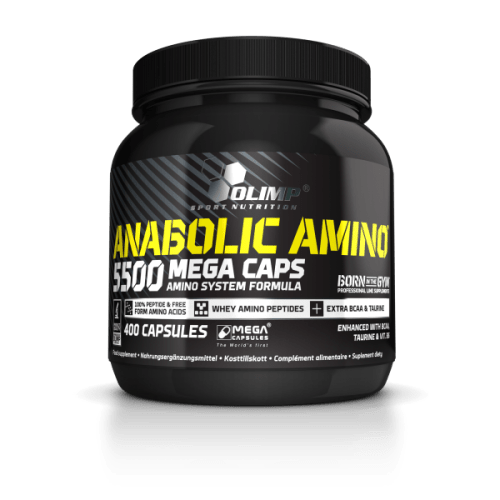 Anabolic Amino 5500 MC Kapseln von Olimp mit Neutral Geschmack in der 0.464KG Packung. Olimp – Anabolic Amino 5500 400 Kapseln Anabolic Amino 5500 von Olimp ist ein klassisches Aminosäurensupplement für Bodybuilder und Kraftsportler.Es sind insgesamt je Portion (6 Kapseln) 5500mg Aminosäuren enthalten, zudem wurden Taurin und Vitamin B6 zugefügt. Du kannst 2-3 Portionen täglich zu Dir nehmen. Neben allen EAA (inkl. BCAA) ist auch L-Glutaminsäure, die in der Skelettmuskulatur am häufigsten vorkommende Aminosäure, enthalten. Vorteile der Anabloic Amino 5500 Kapseln: wertvollen Aminosäuren Einnahme 2-3 mal täglich in Kapselform ideal für ambitionierte Bodybuilder Mit wertvollen Aminosäuren für Bodybuilder und alle, die es werden wollen!