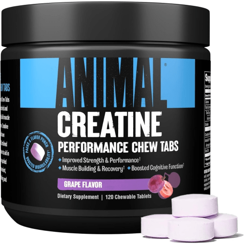 Animal Creatine Chews Universal Nutrition mit Grape Geschmack in der 0.38KG Packung. Creatin Power für dein Workout! Zutatenliste: Kreatinmonohydrat, Panax notoginseng Extrakt (Wurzel), Astralagus membranaceous Extrakt (Wurzel) (AstraGin™), Meersalz.Andere Inhaltsstoffe: Zucker, Dextrose, Maltodextrin, Stearinsäure, natürliche und künstliche Geschmacksstoffe, Magnesiumstearat, Zitronensäure, Äpfelsäure, Rote-Bete-Pulver. Besondere Merkmale: Mit Zucker(n). Verzehrempfehlung: Täglich 4 Kautabletten einnehmen.An Trainingstagen 30 Minuten vor dem Training. An trainingsfreien Tagen in der Früh einnehmen. Aufbewahrung: Kühl und trocken lagern. Vor direkter Sonneneinstrahlung schützen. Bezeichnung: Nahrungsergänzungsmittel mit Kreatinmonohydrat Nettogewicht: 0,38kg (120 Kautabletten) Hinweis: Wir empfehlen eine ausgewogene und abwechslungsreiche Ernährung, sowie eine gesunde Lebensführung. Nahrungsergänzungen dienen nicht als Mahlzeitenersatz, sondern ausschließlich als Ergänzung der Nahrung bei Bedarf. Nahrungsergänzungen stellen keinen Ersatz für eine ausgewogene Ernährung dar. Die angegebene empfohlene tägliche Verzehrmenge darf nicht überschritten werden. Außerhalb der Reichweite von kleinen Kindern aufbewahren. Die Creatine Chews von Universal Nutrition liefern pro täglicher Dosis ganze 5g Kreatin Monohydrat! Ideal für alle Kraftsportler, da Kreatin die körperliche Leistung bei Schnellkrafttraining im Rahmen kurzzeitiger intensiver körperlicher Betätigung erhöht. Die Einnahme könnte auch nicht einfacher sein – einfach 4 Kautabletten einnehmen, im fruchtigen Fruit Punch oder Grape Geschmack. An Trainingstagen wird empfohlen die Kautabletten 30 Minuten vor dem Training einzunehmen. An trainingsfreien Tagen dann morgens einnehmen.