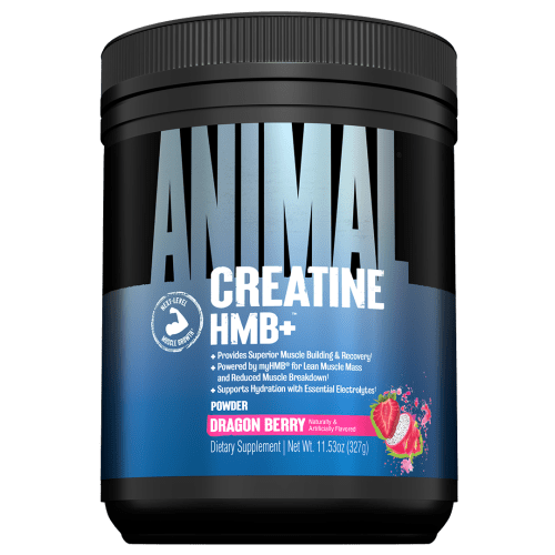 Animal Creatine HMB+ Pulver von Universal Nutrition mit Dragon Berry Geschmack in der 0.33KG Packung. Seit mehr als vier Jahrzehnten steht Universal Nutrition für hochwertige Nahrungsergänzungsmittel im Leistungssport. Als echte Athleten weiß Universal, was es braucht, um Fortschritte zu erzielen – deshalb wurde die richtigen Produkte entwickelt, die halten, was sie versprechen. Wenn du Kraftsport nicht nur liebst, sondern lebst, bist du bei Universal Nutrition genau richtig. Animal Creatine HMB+ ist ein Nahrungsergänzungsmittel, das Creatin-Monohydrat mit HMB (Hydroxy-Methylbutyrat) kombiniert. Pro Portion liefert es 5g Creatin und 3g HMB. Ergänzt wird die Formel durch Vitamin D3 und wichtige Elektrolyte wie Kalium, Magnesium, Kalzium und Natrium. Das Produkt richtet sich an Sportler und Fitnessbegeisterte, die ihre Trainingsleistung unterstützen möchten. Es ist in zwei fruchtigen Geschmacksrichtungen erhältlich: Dragon Berry und Power Punch.