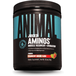 Animal Juiced Aminos Strawberry Lemonade Pulver von Universal Nutrition mit Strawberry Lemonade Geschmack in der 0.378KG Packung. Animal Juiced Aminos liefert dir essenzielle Aminosäuren, BCAAs und funktionelle Zusatzstoffe – koffeinfrei, leistungsstark und perfekt für jede Trainingsphase. Animal Juiced Aminos ist ein hochwertiges Nahrungsergänzungsmittel mit essenziellen Aminosäuren (EAAs), das gezielt zur Unterstützung der Trainingsleistung sowie Hydratation und Ausdauer entwickelt wurde. Ideal für die Einnahme während oder nach dem Training. Vollständiges EAA-Profil Die Formel liefert ein umfassendes Spektrum an essenziellen Aminosäuren in optimalem Verhältnis – inklusive einer bewährten BCAA-Matrix im 2:1:1-Verhältnis. 6 g BCAA und EAA pro Portion Mit insgesamt 6 g Aminosäuren ist Animal Juiced Aminos perfekt für die Einnahme vor oder nach dem Training – oder wann immer deine Muskeln zusätzliche Unterstützung benötigen. Koffeinfrei und somit flexibel über den ganzen Tag nutzbar.