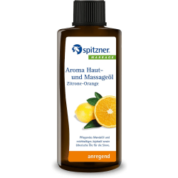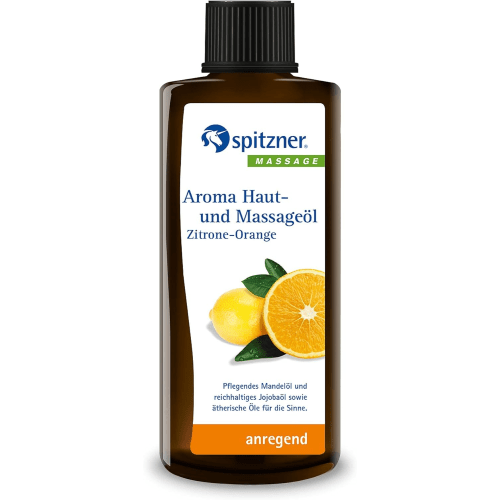 Aroma Haut- und Massageöl Zitrone-Orange Spitzner. Das Aroma Haut- und Massageöl von Spitzner Mit sanften kreisenden Bewegungen in die leicht feuchte Haut einmassiert, entfalten sich die Eigenschaften von Mandel- und Jojobaöl besonders gut. Die beiden rückfettenden Öle integrieren sich problemlos in den obersten Hautschichten. Dort schützen sie, indem sie die Hautbarriere stärken und die Haut vor Feuchtigkeitsverlust bewahren. Die durch das Einmassieren freigesetzte Wärme intensiviert außerdem die Wirkung der Aromen, die auf alle Sinne wirken. Die sanften Aroma Haut- und Massageöle wirken somit auf Körper, Geist und Seele gleichermaßen. Sie lassen sich leicht verteilen und ziehen rasch ein. Das Aroma Haut- und Massageöl Feige-Limone ist 100 % Natur pur, also ohne synthetische Farb- und Konservierungsstoffe hergestellt und frei von mineralischen Ölen. Was spricht gegen Mineral- bzw. gegen Silikonöle? Mineralöle stammen aus keiner nachwachsenden Rohstoffquelle und Silikonöle sind biologisch schwer abbaubar. Spitzner verzichtet daher auf diese Inhaltsstoffe. Tipp: wird das Öl vorab erwärmt, können seine Inhaltsstoffe leichter in die Haut eindringen und wirken intensiver. Aroma Haut- und Massageöl Zitrone-Orange (190ml) hat die PZN 5465123. Die vorgefertigten Aroma Haut- und Massageöle von Spitzner bestehen aus einer rein pflanzlichen Mischung, die Mandelöl für intensive Pflege, Jojobaöl für seine Reichhaltigkeit und sorgfältig ausgewählte ätherische Öle kombiniert. Die natürlichen Öle, gewonnen aus Pflanzen, enthalten Flavonoide und Vitamin E. Die positiven Eigenschaften der Öle entfalten sich optimal, wenn sie in die leicht feuchte Haut einmassiert werden. Die Öle lassen sich leicht auftragen und ziehen schnell ein. Die Produkte von Spitzner sind frei von synthetischen Stoffen, Parabenen, Silikonen, PEG und Mineralölen. Dies spiegelt das Engagement für hochwertige, natürliche Pflegeprodukte wider. Entdecke die Vielfalt der Aroma Haut- und Massageöle von Spitzner, darunter die Varianten Feige-Limone, Honig Amyris, Rosenholz-Geranium und Zitrone-Orange. Erlebe die einzigartigen Duftkompositionen und gönne dir eine Auszeit, indem du die verschiedenen Aromen der hochwertigen Öle genießt!