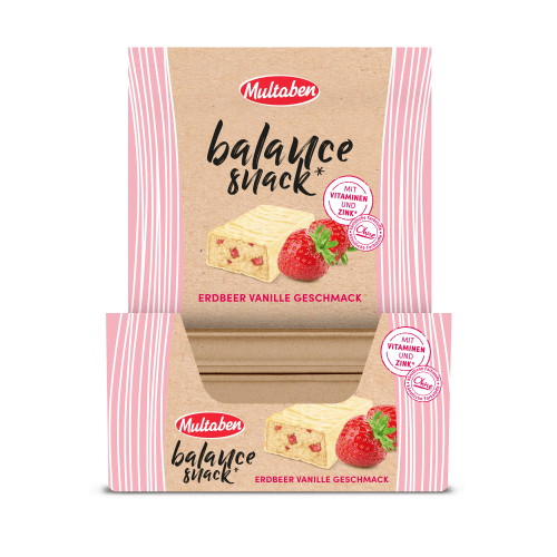 Balance Snack Riegel Multaben mit Erdbeer-Vanille Geschmack in der 0.684KG Packung. Balance Snack Riegel von Multaben Der Balance Snack Riegel von Multaben kann dir beim Erreichen deines Abnehm-Ziels optimal begleiten! Die Riegel enthalten hochwertiges Molkenprotein, Vitamin B6, C und E und den Minerallstoff Zink. Ideal als Zwischenmahlzeit! Die Riegel sind eine perfekte Alternative zu herkömmlichen Süßigkeiten und sorgen auch während dem Abnehmen für echtes Genießen! Kaloriearme Süßigkeiten von Multaben!