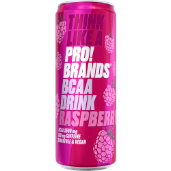 BCAA Drink ProBrands mit Himbeere Geschmack in der 0.33L Packung. Die Pro!Brands BCAA Drinks bieten eine erfrischende und funktionale Möglichkeit, deinen Körper während und nach dem Training zu unterstützen. Mit einem hohen Gehalt an verzweigtkettigen Aminosäuren (BCAA: Leucin, Isoleucin und Valin) fördern sie die Muske