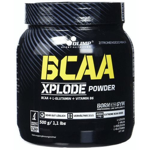 BCAA Xplode Powder Pulver von Olimp mit Zitrone Geschmack in der 0.5KG Packung. Olimp – BCAA Xplode 500 gDas BCAA Xplode Pulver von Olimp enthält die hochwertigen BCAA-Aminosäuren L-Leucin, L-Isoleucin und L-Valin im bewährten Verhältnis 2:1:1. BCAA Xplode liefert eine Dosis von bis zu 6.000mg BCAA Aminosäuren in jeder Portion mit 10g Pulver + 200ml Wasser und wurde noch mit L-Glutamin und Vtamin B6 angereichert. Die Einnahme von 1-2 Portionen kann über den Tag verteilt zwischen den Mahlzeiten und/oder vor dem Schlafen gehen erfolgen oder an Trainingstagen vor und nach dem Training. BCAA Xplode kann in Diät- oder intensiven Trainingsphasen als Alternative zu klassischen Proteinshakes genutzt werden und wird von zahlreichen Athleten der unterschiedlichsten Sportarten genutzt. Das Pulver ist mittlerweile in zahlreichen leckeren Geschmacksrichtungen verfügbar. Vorteile von BCAA Xplode: BCAA Aminosäuren im Verhältnis 2:1:1 ideal in Diätphasen lecker im Geschmack zusätzlich sind Glutamin & Vitamin B6 enthalten Das BCAA Xplode enthält hochwertige BCAA-Aminosäuren im bewährten Verhältnis 2:1:1.
