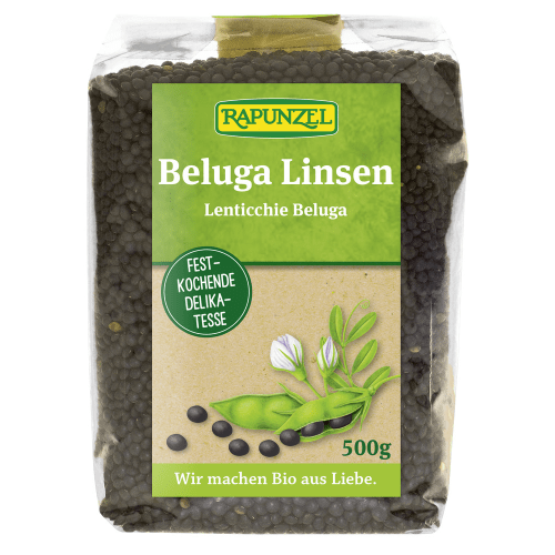 Beluga Linsen schwarz bio Rapunzel. Kaviar der Vegetarier! Eco control number: DE-ÖKO-006 Die kleine schwarze festkochende Gourmet-Linse sind würzig aromatisch. Sie eignen sich Ideal für Reisgerichten, für Salate, Suppen, Bowls und vieles mehr.