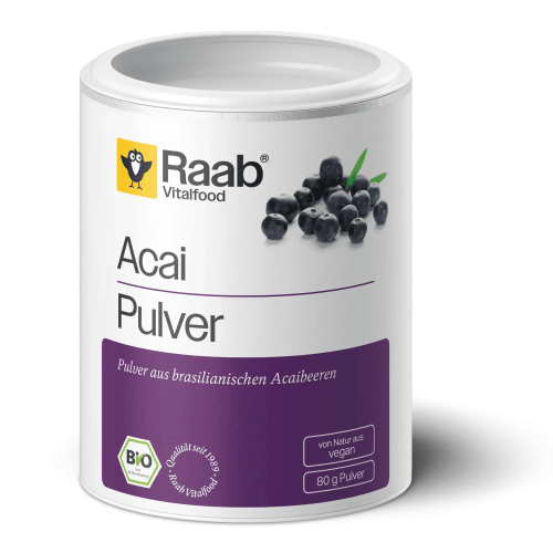 Bio Acai Pulver Raab Vitalfood. Was ist Bio Acai Pulver von Raab Vitalfood und wie wirkt es? Das Bio Acai Pulver von Raab Vitalfood stammt aus dem Regenwald im Amazonasgebiet und besteht aus den wertvollen Inhaltsstoffen Polyphenole, Mineralstoffen und Vitamine. Die Acaibeere ,,Euterpe oleracae´ aus dem Amazonasgebiet mit Ihrem Gehalt an Antioxidantien erobert die Herzen körperlich und geistig aktiver Menschen. Das Bio Acai Pulver von Raab Vitalfood ist für alle gedacht, die eine geschmackvolle Alternative suchen Ihr Essen mit Nährstoffen und Vitaminen anzureichen. Gebe täglich ca. 1 TL (3g) Pulver in 250ml Flüssigkeit, z.B. Fruchtsäfte oder Soja- , Hafer-, Mandel-, Reis- oder Kokosmilch. Das Acaipulver passt wunderbar in Smoothies, Müslis, Desserts, Joghurts und Backwaren. Eco control number: DE-ÖKO-001 Die Superbeere aus Brasilien!