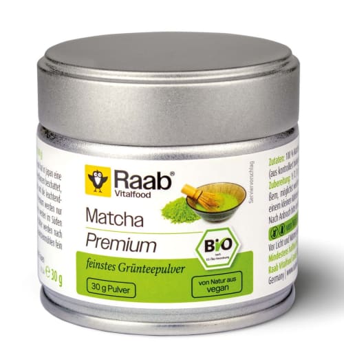 Bio Matcha Premium Pulver Raab Vitalfood. Bio Matcha Premium von Raab Vitalfood Matcha ist ein sehr hochwertiger und feiner Grüntee und hat in Japan eine jahrhundertealte Tradition. Für Bio Matcha Premium Grünteepulver von Raab Vitalfood werden nur die feinsten, jungen Blätter der Tee-Pflanzen verwendet. Diese werden auf einer Plantage ganz im Süden Japans streng nach ökologischen Standards kultiviert. Die Blätter werden nach der schonenden Trocknung und dem Entfernen der Blattadern in Granitsteinmühlen hochfein vermahlen. Eco control number: DE-ÖKO-001 Premium Grünteepulver aus Japan!