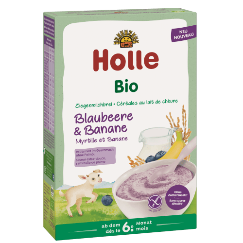 Bio-Milchbrei aus Ziegenmilch ab dem 6. Monat Pulver von Holle mit Blaubeere Geschmack in der 0.2KG Packung. Bio-Milchbrei aus Ziegenmilch Entdecke den Bio-Ziegenmilchbrei von Holle, ideal für Babys ab 6 Monaten. Du kannst zwischen zwei leckeren Geschmacksrichtungen wählen: Blaubeere und Banane oder Himbeere und Banane. Die Bio-Qualität von Holle garantiert, dass dein Baby nur das Beste bekommt, ohne schädliche Zusatzstoffe. Die Zubereitung ist kinderleicht, so dass du im Handumdrehen eine nahrhafte Mahlzeit für dein Baby zaubern kannst. Mit dem Bio-Ziegenmilchbrei tust du deinem Kind etwas Gutes und sorgst für eine leckere und schnelle Mahlzeit. Eco control number: AT-BIO-501 Bio-Milchbrei aus Ziegenmilch mit fruchtig-leckerem Geschmack!