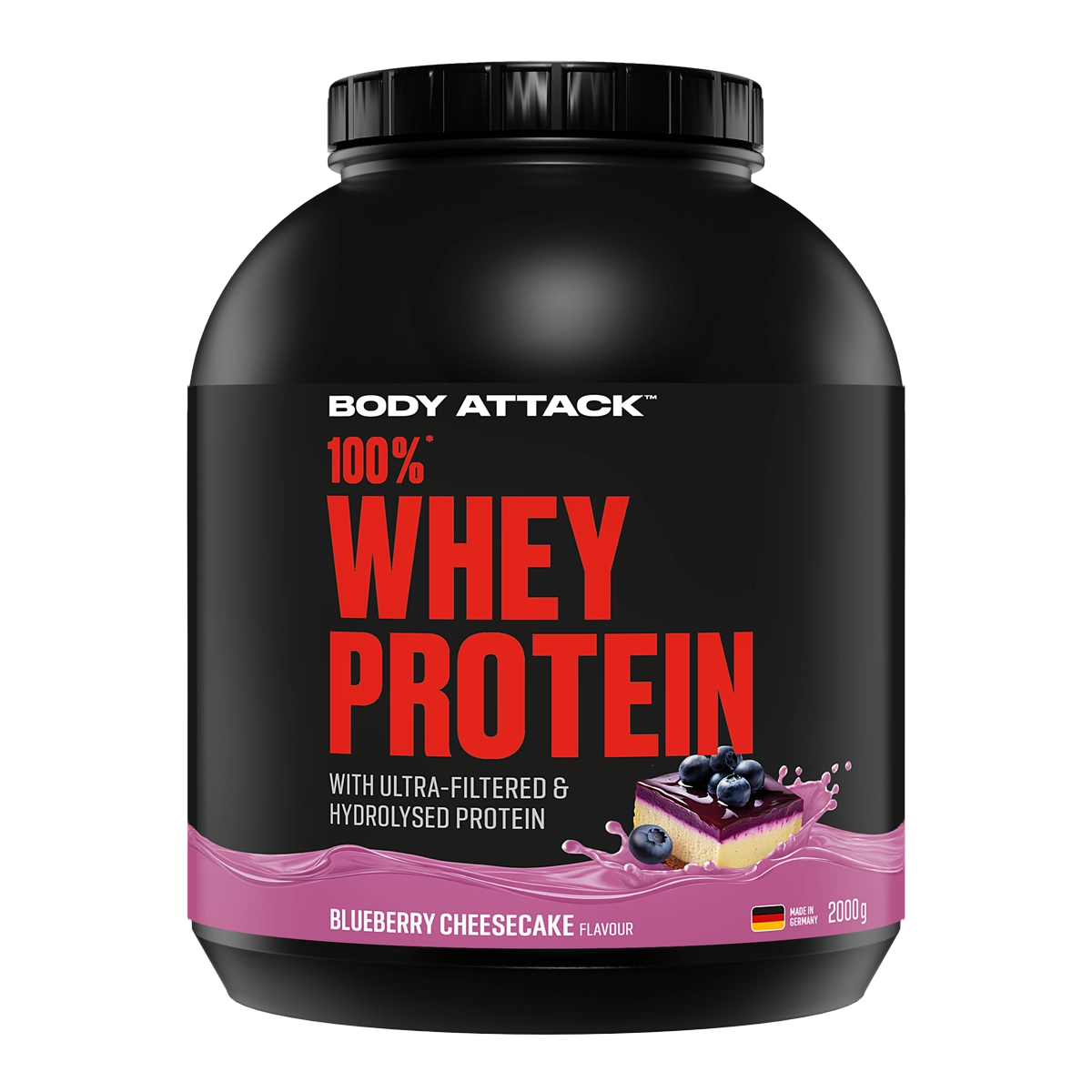 Body Attack – 100 % Whey Protein – Blueberry Cheesecake – 2000 g