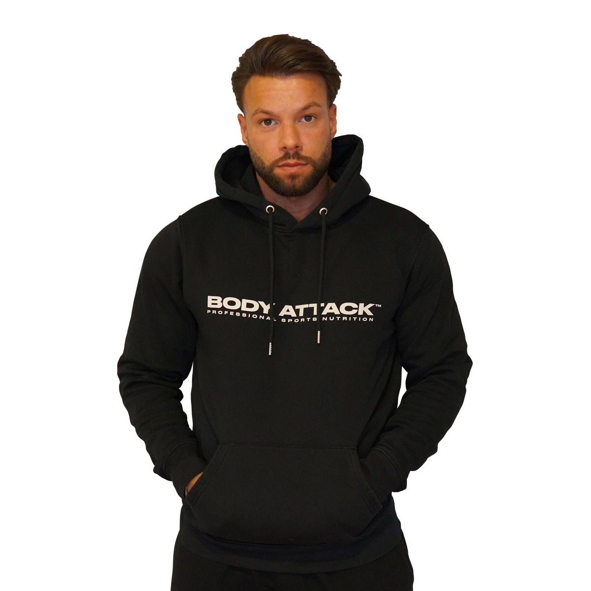 Der lässige HOODIE von BODY ATTACK wird schnell zu deinem Lieblingsstück im Kleiderschrank oder der Sporttasche werden. Neben dem praktischen Kordelzug zum Verstellen und einer integrierten Tasche überzeugt er vor allem durch sein Material. Denn dieser Fitness HOODIE aus 85 Prozent Bio-Baumwolle ist unglaublich leicht, hält aber trotzdem warm – damit du dein Programm bei jedem Wetter durchziehen kannst! Die flauschige Innenseite sorgt für ein angenehmes Tragegefühl während des Trainings oder in der Freizeit. BODY ATTACK HOODIE – Gemütlicher Style zum Überziehen Für diese Trageanlässe ist der BODY ATTACK HOODIE besonders geeignet: Gym / Indoor Entspannen am RestdayFür wen ist der BODY ATTACK HOODIE geeignet? Für alle Sportlerinnen und Sportler dank Unisex-Passform BODY ATTACK HOODIE – Zum Regenerieren oder Abliefern In unserem schlichten Fitness HOODIE kannst du deine Höchstleistungen abrufen oder es dir am Restday auf dem Sofa bequem machen. Von innen schön weich, von außen robust. Ready to ATTACK! Ultraleicht im Gewicht Der strapazierfähige BODY ATTACK Aufdruck des HOODIES veredelt deinen sportlich-lässigen Style genauso wie die metallverstärkten Ösen am Kordelzug und den Kordelenden. Dazu kommen die doppellagige Kapuze sowie die gerippten Bündchen an Ärmeln und Saum. Mit 350 GSM – also 350 Gramm Stoff pro Quadratmeter – hat der Fitness HOODIE in klassischem Grau oder Schwarz genau das richtige Gewicht für deine straffen Pläne! Leicht und atmungsaktiv engt er dich weder ein, noch lässt er dich bei Wind und Wetter frieren. Das Textil setzt sich aus 85 % hochwertiger Bio-Baumwolle und 25 % recyceltem Polyester zusammen. Wir von BODY ATTACK bieten dir Produkte auf allerhöchstem Niveau – nicht nur in Sachen Sportbekleidung! Dein sportlicher Look fürs (Home-)Gym Eine Runde um den Block oder Aufwärmen vorm Krafttraining – vergiss deinen Fitness HOODIE nicht! Schnell übergeworfen kannst du direkt starten und abliefern, während dich der Sports Nutrition HOODIE von BODY ATTACK warmhält und deine arbeitenden Muskeln gleichzeitig atmen lässt. In der Kängurutasche am Bauch wärmst du dir die Hände oder verstaust noch schnell das Nötigste, wenn es nach draußen geht, und setzt die Kapuze auf, um dich vor dem aufkommenden Wind zu schützen. Nichts hält dich auf mit der richtigen Sportbekleidung! Ganzheitliches Training braucht ein ganzheitliches Outfit Mit funktionaler, stylischer Sportswear kennen wir uns aus. Darum findest du passend zu unserem HOODIE auch das qualitative Sport T-SHIRT aus nachhaltiger Bio-Baumwolle. Das ziehst du einfach unter den Kapuzenpullover und bist auch dann noch ideal gekleidet, wenn es für den Hoodie zu warm wird – weil die Sonne und die Muskeln brennen!