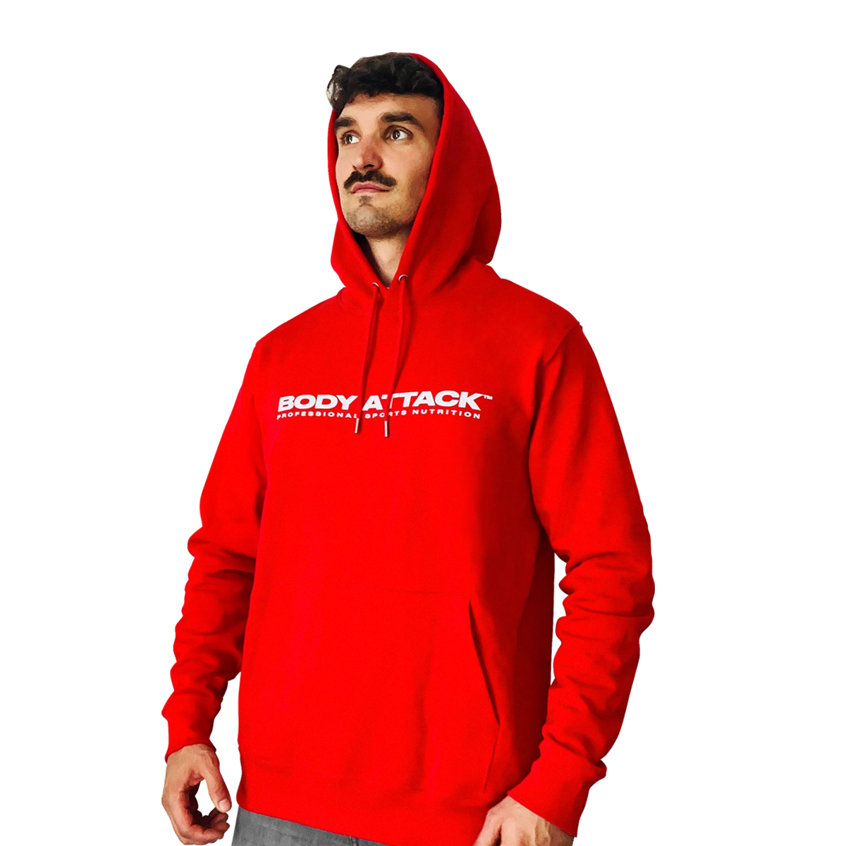 Der lässige HOODIE von BODY ATTACK wird schnell zu deinem Lieblingsstück im Kleiderschrank oder der Sporttasche werden. Neben dem praktischen Kordelzug zum Verstellen und einer integrierten Tasche überzeugt er vor allem durch sein Material. Denn dieser Fitness HOODIE aus 85 Prozent Bio-Baumwolle ist unglaublich leicht, hält aber trotzdem warm – damit du dein Programm bei jedem Wetter durchziehen kannst! Die flauschige Innenseite sorgt für ein angenehmes Tragegefühl während des Trainings oder in der Freizeit. BODY ATTACK HOODIE – Gemütlicher Style zum Überziehen Für diese Trageanlässe ist der BODY ATTACK HOODIE besonders geeignet: Gym / Indoor Entspannen am RestdayFür wen ist der BODY ATTACK HOODIE geeignet? Für alle Sportlerinnen und Sportler dank Unisex-Passform BODY ATTACK HOODIE – Zum Regenerieren oder Abliefern In unserem schlichten Fitness HOODIE kannst du deine Höchstleistungen abrufen oder es dir am Restday auf dem Sofa bequem machen. Von innen schön weich, von außen robust. Ready to ATTACK! Ultraleicht im Gewicht Der strapazierfähige BODY ATTACK Aufdruck des HOODIES veredelt deinen sportlich-lässigen Style genauso wie die metallverstärkten Ösen am Kordelzug und den Kordelenden. Dazu kommen die doppellagige Kapuze sowie die gerippten Bündchen an Ärmeln und Saum. Mit 350 GSM – also 350 Gramm Stoff pro Quadratmeter – hat der Fitness HOODIE in klassischem Grau oder Schwarz genau das richtige Gewicht für deine straffen Pläne! Leicht und atmungsaktiv engt er dich weder ein, noch lässt er dich bei Wind und Wetter frieren. Das Textil setzt sich aus 85 % hochwertiger Bio-Baumwolle und 25 % recyceltem Polyester zusammen. Wir von BODY ATTACK bieten dir Produkte auf allerhöchstem Niveau – nicht nur in Sachen Sportbekleidung! Dein sportlicher Look fürs (Home-)Gym Eine Runde um den Block oder Aufwärmen vorm Krafttraining – vergiss deinen Fitness HOODIE nicht! Schnell übergeworfen kannst du direkt starten und abliefern, während dich der Sports Nutrition HOODIE von BODY ATTACK warmhält und deine arbeitenden Muskeln gleichzeitig atmen lässt. In der Kängurutasche am Bauch wärmst du dir die Hände oder verstaust noch schnell das Nötigste, wenn es nach draußen geht, und setzt die Kapuze auf, um dich vor dem aufkommenden Wind zu schützen. Nichts hält dich auf mit der richtigen Sportbekleidung! Ganzheitliches Training braucht ein ganzheitliches Outfit Mit funktionaler, stylischer Sportswear kennen wir uns aus. Darum findest du passend zu unserem HOODIE auch das qualitative Sport T-SHIRT aus nachhaltiger Bio-Baumwolle. Das ziehst du einfach unter den Kapuzenpullover und bist auch dann noch ideal gekleidet, wenn es für den Hoodie zu warm wird – weil die Sonne und die Muskeln brennen!