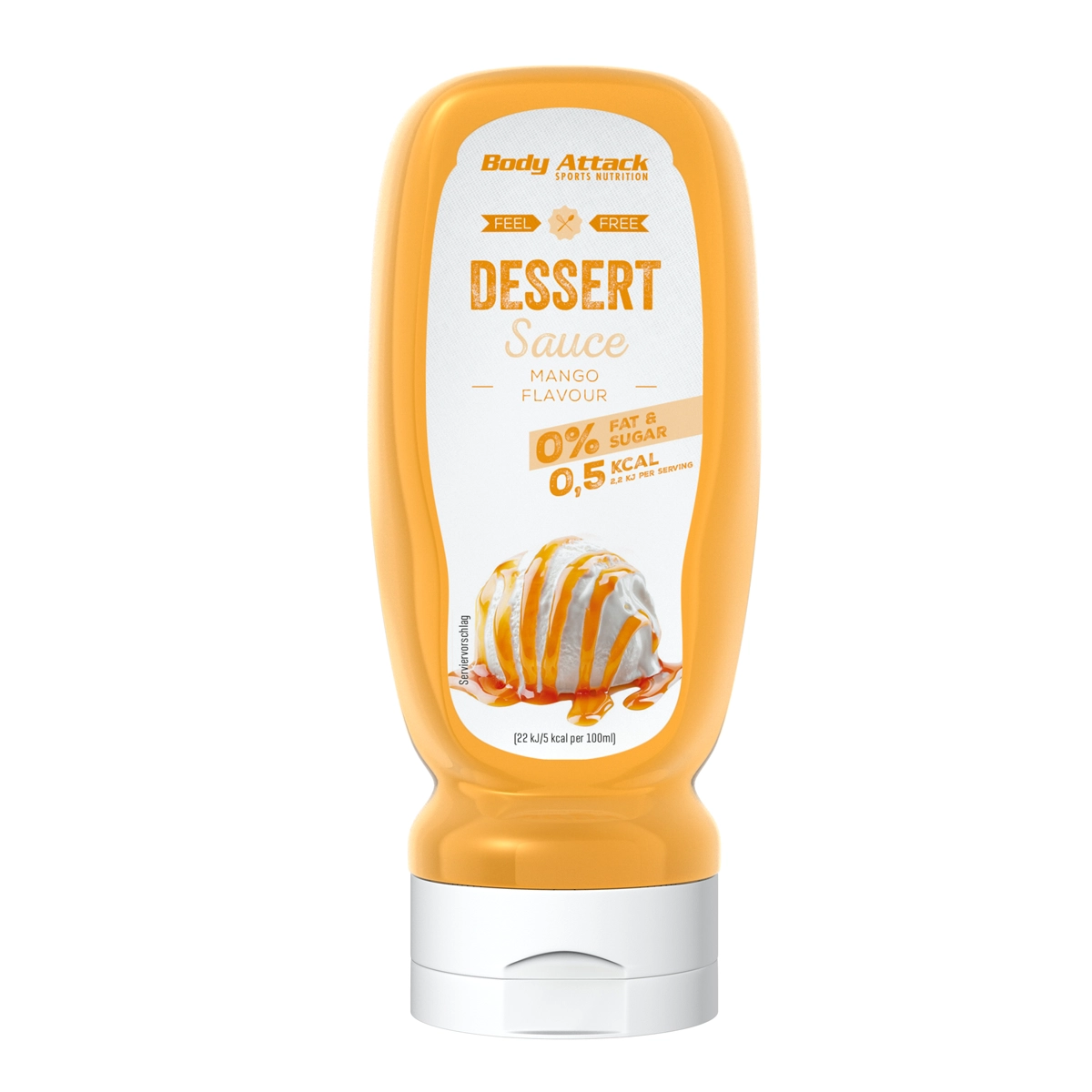 Summer Time in deiner Küche! Lust auf vollen Geschmack und wenig Kalorien? Mach dich bereit für ein fruchtiges Geschmackserlebnis! Die DESSERT SAUCE Mango von Body Attack bietet dir tropischen Mangogenuss egal, wo du bist! Zucker und Fett? Wirst du hier nicht finden! Deine laktosefreie und vegane Dessertsoße hat weniger als eine Kalorie pro Portion. Unglaublich. Wissen wir. Unglaublich, aber wahr. Zeit für ein diätfreundliches Mango-Lassi! DESSERT SAUCE MANGO FLAVOUR – Saftiger Mangogeschmack! Für diese Verwendungsformen ist die DESSERT SAUCE Mango besonders geeignet: Als Soße für Nachspeisen Zum Anreichern von selbstgemachten Soßen Als Topping für süße Bowls Für wen ist die DESSERT SAUCE Mango geeignet? Diätwillige und Figurbewusste Personen, die fruchtige Soßen lieben Personen, die auf Kalorien verzichten möchten Personen mit einer veganen Ernährungsform DESSERT SAUCE MANGO – Der volle Geschmack der Mango!Zeit für ein fruchtiges Erlebnis! Wer sagt, dass süß kalorienreich sein muss? Wir sagen: Das geht auch anders! An alle Naschkatzen und Fruchtliebhaber: Freut euch auf maximalen Geschmack mit minimalen Kalorien. Freut euch auf die DESSERT SAUCE Mango! Strandfeeling für unterwegs! Bei tropischen Früchten denkt man unweigerlich an weite Strände, oder? Wir geben dir das Sommerfeeling mit in jede Flasche. Süßer Mango-Flavour, wann und wo immer du gerade bist. Deine vegane Dessertsoße! Diese vegane Soße darf bei dir nicht fehlen! Kaum zu glauben, aber die ganze Flasche hat nur 15 Kalorien! Zucker, Füllstoffe und Fett haben wir weggelassen und beweisen dir: Geschmackserlebnisse müssen keine Kalorienbomben sein! Ach, übrigens: Die DESSERT SAUCE Mango ist laktosefrei. Du kannst beruhigt zugreifen und genießen! Perfekte Begleitung für jede Diätphase! In einem Cut kann dich der innere Schweinehund einholen. Das Verlangen nach Süßem wird immer stärker. Da wäre es doch praktisch, wenn ein Begleiter dabei wäre, der einen auf dem richtigen Weg hält. Jetzt hast du ihn und er hat wenig Kalorien, ist fruchtig und mega lecker. Die DESSERT SAUCE Mango ist dein perfekter Partner für jede Diät! Bringe deine Rezepte auf das nächste Level! Joghurt-Bowls, Muffins, Eis. Deine Ernährung muss nicht langweilig sein! Wie wäre es mit einem Upgrade für deine Desserts? Mit der Mango Sauce bekommst du fruchtigen Mangogeschmack für jeden deiner Nachtische! Einfacher geht es nicht.