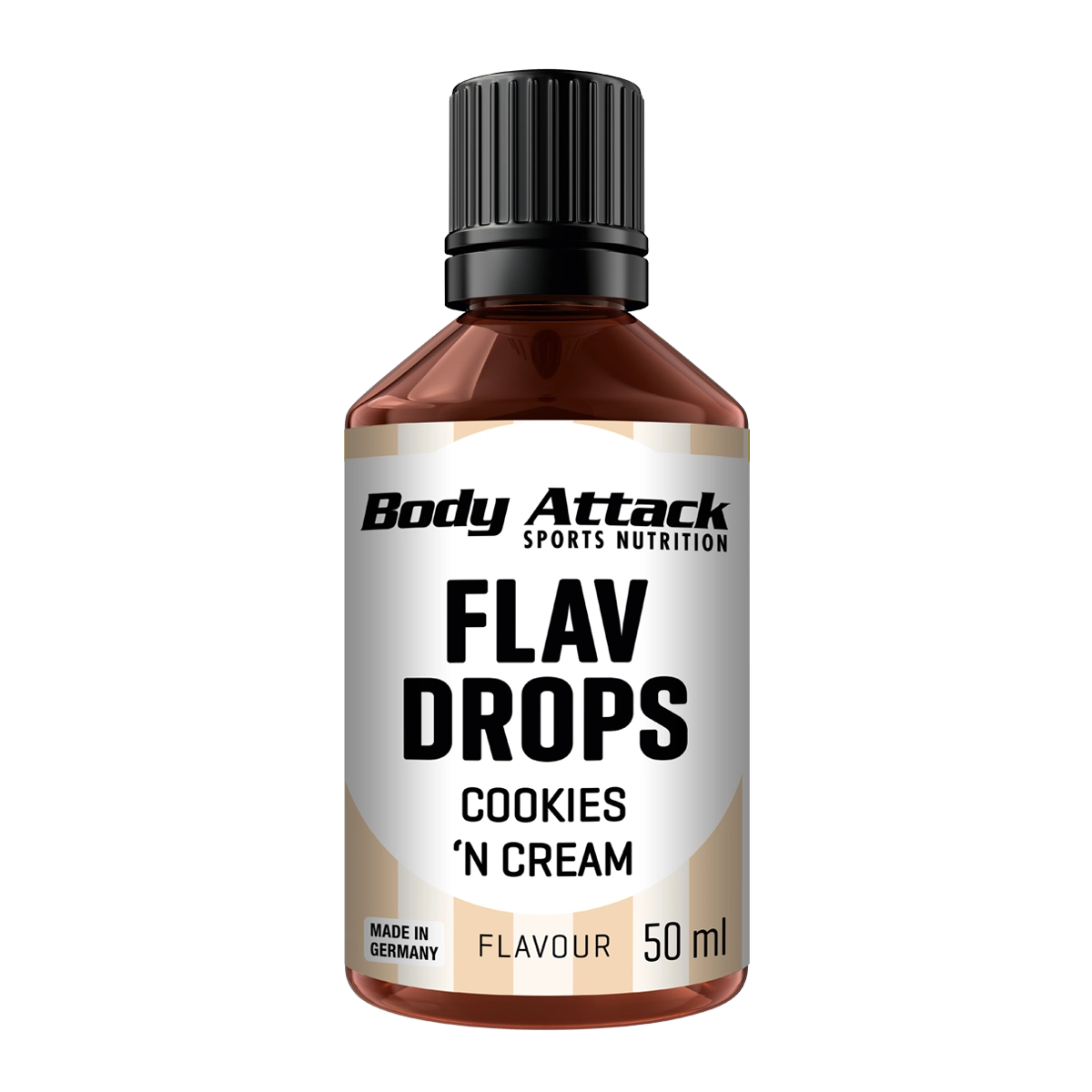 Keine Lust auf fades, langweiliges Essen? Body Attack FLAV DROPS – das Upgrade für deine Lieblingsspeisen und –getränke sorgt für neue Gaumen-Highlights. Die Liquid Aromen sind völlig kalorien- und zuckerfrei und dein neuer bester Freund in kalorienkontrollierten Phasen. Die Aroma Tropfen sind extrem ergiebig ein paar Tropfen reichen , vegan und selbstverständlich frei von Farb- und Konservierungsstoffen. FLAV DROPS gehören in jede Küche, auch in deine – just flav our it! Body Attack FLAV DROPS – Der Geschmacks-Turbo Verfeinere deine Speisen und Getränke ohne schlechtes Gewissen: Extrem ergiebig Praktische pipettenfreie Dosierung Kalorien- und zuckerfrei Ohne Farb- und Konservierungsstoffe Vegan Für wen sind die FLAV DROPS geeignet: Personen, die ihre Süßspeisen verfeinern möchten Kaffee- und Teeliebhaber Figurbewusste Personen und Diätwillige Kalorienkontrollierte-Ernährung FLAV DROPS – hier kommt der Genuss! Werde zum Magier und verwandle mit unseren Flavour Drops Wasser, Milch, Shakes, Backwaren, Quark und Joghurt in süße Geschmackserlebnisse. Bei den hochkonzentrierten Aromastoffen genügen bereits wenige Tropfen, um dem gewünschten Lebensmittel oder Getränk einen leckeren oder intensiveren Geschmack zu verleihen. Einen dicken Pluspunkt sammeln sie vor allem aufgrund ihrer praktischen pipettenfreien Dosierung. Unsere FLAV DROPS eignen sich ideal für all deine Sportergänzungsmittel. Ob Protein Pancakes oder Protein Shake – die Aroma Tropfen ermöglichen eine unkomplizierte Aromatisierung deiner Sporthelfer – Flavour your life! Unsere Aromate: Natürlich – ohne Zucker Wenn du Zucker und Fett aus deiner Ernährung verbannst, jedoch keine langweiligen und faden Mahlzeiten auf dem Tisch haben möchtest – dann greife zu den FLAV DROPS! In jedem Tröpfchen steckt die Kraft der angenehmen Süße aus dem Süßungsmittel Sucralose. Ohne Farbstoffe, Zucker, Fett und Kalorien – die flüssigen Aromen von Body Attack sind das Must-Have für gesundheitsbewusste Feinschmecker und ideal für Veganer. Lass dich von unseren 22 tollen Aromen inspirieren. Pimp your Cake Bei Gebäck kannst du nicht nein sagen? Mit den zuckerfreien Premium Aromen von Body Attack musst du das auch nicht! Unsere FLAV DROPS sind ideal zum kalorienfreien Süßen und Verfeinern deiner Backwaren. Kuchen, Kekse und Muffins lassen sich perfekt mit den Aromaten verfeinern – verwandle deinen Kuchen in einen Lemon Cake und vieles mehr. Deinen Kreationen sind keine Grenzen gesetzt. Aber bitte mit Kaffee Für Kaffee-Liebhaber erfüllt sich mit den FLAV DROPS ein Traum. Mit nur wenigen Tropfen zauberst du aus einem normalen Milchkaffee ein echtes Geschmackshighlight, das sich mit allen berühmten Kaffehausketten messen lassen kann. Das i-Tüpfelchen – die natürlichen Aromen kommen ganz ohne Zuckerzusatz aus. Stattdessen wird dir dein Kaffee den Tag versüßen. Ob bei Freunden, in einem Café oder als Coffee-to-go auf dem Weg zur Arbeit – die FLAV DROPS sind dein idealer Begleiter.