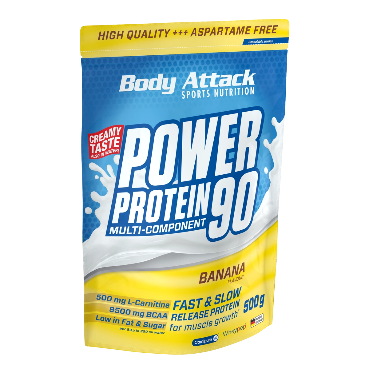 Shootingstar. Alleskönner. Lieblingsprotein! Das Super-Eiweiß für jede Sportart. Die Rede ist vom besten POWER PROTEIN 90 aller Zeiten. Das BODY ATTACK 5K Protein überzeugt auf ganzer Linie. Perfekt aufeinander abgestimmte Eiweißkomponenten unterstützen dich bei deinen Zielen. Mehr als 85 Prozent Eiweiß aus Whey-, Casein- und Egg-Protein, BCAA und L-Carnitin sowie jede Menge Vitamine sind bei unserem Eiweißpulver Standard. Das hört sich aufregend an? Stimmt. Das POWER PROTEIN 90 ist der perfekte Begleiter. Für dich, für jeden. Jederzeit. Für diese Ziele ist das POWER PROTEIN 90 genau die richtige Wahl: Muskelaufbau und -definition Muskelerhalt Diät Zwischenmahlzeit oder Snack Für wen ist der POWER PROTEIN 90 geeignet: Kraft-, Ausdauer- und Fitness-Sportler Figurbewusste, die fettarme Shakes suchen Für alle, die auf leckere und gesunde Drinks stehen DAS BESTE FÜR JEDES TRAINING: POWER PROTEIN 90 Du bist auf der Suche nach dem perfekten Eiweißpulver und plötzlich tauchen all diese Fragen auf. Wie viel Whey-Protein soll enthalten sein? Muss es Isolat sein oder eher ein Konzentrat? Was ist das überhaupt und ist Casein dabei tatsächlich wichtig? Mit L-Carnitin oder ohne, zusätzliche Vitamine ja oder nein? Wir helfen dir, die Entscheidung zu treffen: Unser POWER PROTEIN 90 ist garantiert das richtige Eiweißpulver für dich! Denn das BODY ATTACK 5K Mehrkomponenten Protein setzt sich aus fünf unterschiedlichen Eiweißquellen zusammen. Dabei sind die verschiedenen Proteine perfekt aufeinander abgestimmt. Den Spagat zwischen schnell verfügbarem Eiweiß und anhaltender Muskelversorgung schaffen wir mit hochwertigem Whey- und Casein-Protein. Egg-Protein vervollständigt das Aminosäureprofil und sorgt für höchste biologische Wertigkeit. Das macht unseren „All in One“-Proteinshake zum perfekten Allrounder! POWER PROTEIN 90 MIT WERTVOLLEN ZUSATZKOMPONENTEN Die verschiedenen Proteinquellen garantieren eine ideale Bioverfügbarkeit und ein hervorragendes Aminosäureprofil. Der hohe Anteil an BCAA im POWER PROTEIN 90 hat es in sich: Pro Portion liefert unser Eiweißshake ganze 9.900 mg BCAA* – ideal für deine Muskeln! POWER PROTEIN 90 enthält zudem zehn wichtige Vitamine, darunter B-Vitamine, Vitamin C und Vitamin E. Zusammen mit dem hervorragenden Proteinprofil ist dein Körper top versorgt. Unterwegs. Im Training. Im Alltag. Unser POWER PROTEIN 90 kann aber noch mehr! Neben wertvollen Vitaminen steckt in jeder Sorte des POWER PROTEIN 90 auch L-Carnitin aus patentiertem Carnipure™. L-Carnitin ist ein vitaminähnlicher Stoff, der dich beim Shape-Workout unterstützt. Die vielen Features hören sich aufregend an? Stimmt. Also warte nicht länger und schnappe dir unseren Alleskönner! WAS IST NOCH VON POWER PROTEIN 90 ZU ERWARTEN? Unser POWER PROTEIN 90 ist aspartamfrei. Außerdem legen wir viel Wert darauf, dass unser Produkt in Deutschland hergestellt wird. Für beste Qualität bei Rohstoffen und Verarbeitung. Shake it, Baby! Das POWER PROTEIN 90 schmeckt köstlich in Milch oder Wasser. Den cremigen Geschmack bei hervorragender Löslichkeit garantieren wir auch, wenn du unser Proteinpulver in Wasser mixt. So sparst du dir Kalorien und kannst auch dort, wo du keine Milch kühl aufbewahren kannst, deinen powervollen Shake genießen. Wheypep – schnellstes Whey Hydrolysat für maximale Regeneration Wheypep ist ein hochentwickeltes Molkenprotein (Whey Hydrolysat), das speziell für Sportler und Fitnessenthusiasten entwickelt wurde, die ihre Muskeln nach dem Training optimal versorgen möchten. Durch die Aufspaltung in kurze Peptide wird das Protein besonders schnell vom Körper aufgenommen, wodurch die essenziellen Aminosäuren direkt den Muskeln zur Verfügung stehen. So unterstützt Wheypep nicht nur die schnelle Regeneration, sondern auch den Muskelaufbau, die Leistungsfähigkeit und die Reduzierung von Muskelkater nach intensiven Workouts. Anders als herkömmliches Whey-Protein ist Wheypep leicht verdaulich, belastet den Magen nicht und kann auch direkt nach dem Training oder in stressigen Trainingsphasen eingesetzt werden, wenn die Muskeln besonders schnell Nährstoffe benötigen. GOODBYE LANGWEILIGE SORTEN, HALLO POWER PROTEIN 90 Es kann nur eine geben? Nicht bei uns. Unser POWER PROTEIN 90 erlaubt mehrgleisiges Genießen. Neben den Klassikern Erdbeere, Schokolade und Vanille fahren wir mit Butter-Biskuit, Pistazie, Cookies ´n Cream, Kokosnuss, Milchreis, Blaubeere-Joghurt und vielen weiteren köstlichen Sorten richtig dick auf – und verschlagen dir garantiert die Sprache. Natürlich sind alle Sorten in Wasser wie in Milch gleichermaßen easy aufzulösen! Kölner Liste® – Sicher, Sauber, Stark! Du willst volle Power, aber auf Nummer sicher? Dann check unsere Produkte auf der Gütesiegel der Kölner Liste®! Die Kölner Liste ist DIE Plattform für geprüfte Sportnahrung, die auf verbotene Substanzen getestet wurden. Keine versteckten Risiken, keine bösen Überraschungen – nur pure Performance. Egal ob Supplements, Snacks oder Drinks: Was hier gelistet ist, wurde unabhängig geprüft und gibt dir das gute Gefühl, alles richtig zu machen und clean zu trainieren. Viele unserer Produkte tragen dieses Siegel mit Stolz. Und es kommen immer mehr Neue dazu! *Angaben beziehen sich auf die Geschmacksrichtung Vanille pro Portion 50 g Pulver in 250 ml Wasser.