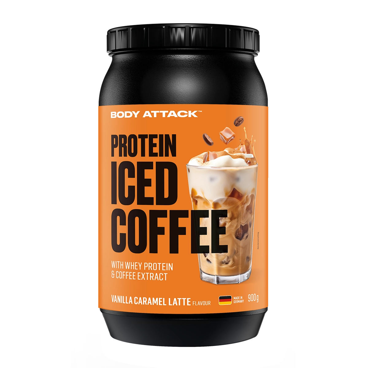 WHEY MEETS WAKE-UP! Hier kommt unser unwiderstehlich Cremiger Iced Coffee zum Selbermixen – wann und wo du magst. Mit bis zu 70 g (!!) Whey Protein auf 100 g, je nach Sorte, versorgt er dich mit eisgekühlten Genussmomenten und jeeeeder Menge Eiweiß. Mit Strohhalm oder ohne, direkt aus dem Shaker oder im Glas serviert: Dieser Eiskaffee ist anders. Besser. Gehaltvoller und leckerer. Egal ob im Sommer auf der Terrasse oder an einem Herbstmorgen, ein guter Eiskaffee geht irgendwie immer. Probier es aus! Noch mehr Argumente gefällig? Wie wäre es mit Qualität Made in Germany, einer Formel mit kaum Zucker und gleich fünf himmlische Flavours. Chocolate: Chocochino in eiskalt? Yes please! Vanilla Caramel Latte: Süß aber kraftvoll. White Chocolate: Der Klassiker, der immer geht. Chai Latte: Namasté, aber mit Power. Hazelnut: Nutty. Naughty. Nice! Für unseren Protein Iced Coffee setzen wir auf feinstes Whey Protein. Der extra Wachkick kommt dank Kaffee-Extrakt ganz von allein. Falls deine bisherige Routine so aussah, dass du erst den Kaffee fürs Koffein und dann noch ein Proteinshake fürs Eiweiß hinterher gemixt hast, kannst du jetzt also auch noch richtig Zeit sparen. Morgens vor dem Office oder nachmittags vorm Gym? Kein Ding – ein Drink, alles drin! Für die perfekte Dosierung des Eiskaffees einfach drei Scoops Protein Iced Coffee mit ca. 250 ml Wasser oder (pflanzlicher) Milch mischen, gut shaken und auf Eis genießen. Jeder Schluck erfrischt und unterstützt dein Muskelaufbau-Training und die anschließende Regeneration. Protein trägt zur Erhaltung der Muskelmasse und zur Erhaltung normaler Knochen bei, das Koffein kann für klaren Fokus sorgen. Ein echtes Power-Duo also! Selbstverständlich denkt unser Whey Protein Pulver auch jede Menge Aminosäuren ab, die du für deinen Trainingsfortschritt brauchst. Leucin, Isoleucin und Valin etwa, auch als BCAA bekannt (branched-chain amino acids). Diese Aminosäuren erfüllen zahlreiche lebenswichtige Funktionen im menschlichen Stoffwechsel und sind wichtiger Bestandteil der Muskeln. Essenzielle Aminosäuren können wir lediglich über die Nahrung aufnehmen. EAA Aminosäuren und ein Plus an Kalzium findest du ebenfalls in diesem vielseitigen Mix.