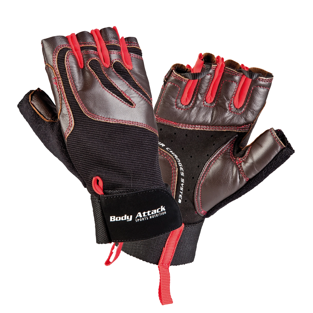 Die Body Attack Sports Nutrition Handschuhe Deluxe aus weichen und strapazierfähigem Nappaleder bieten mit ihren Lüftungslöchern angenehme Luftzirkulation für die Handflächen. Die anatomisch genähte Innenhandfläche der Trainingshandschuhe bietet guten Griff. Nach dem Training lassen sich die Body Attack Sports Nutrition Handschuhe Deluxe bequem durch die Quickpull-Ausziehhilfe ausziehen. Clou der Trainingshandschuhe sind die Frotteedaumen zum Schweißabwischen. Die Vorteile auf einen Blick: Trainingshandschuh aus sehr weichem, strapazierfähigem Nappaleder Lüftungslöcher in der Innenhand für perfekte Belüftung des Handschuhs Anatomisch abgenähte Innenhand Elastischer Handgelenksabschluss Quickpull-Ausziehhilfe Anziehhilfe Frotteedaumen zum Schweiß abwischen So bestimmen Sie die Größe: Legen Sie die Hand mit den Handballen auf ein Zentimetermaß (die Handballen sind dort, wo die Finger entsprießen und sich Schwielen von Hantelstangen bilden). Die Handbreite an dieser Stelle bestimmt die Größe! S: bis 7 cm M: 7 bis 8,2 cm L: 8,2 bis 9,4 cm XL: 9,4 bis 10,8 cm XXL: über 10,8 cm Material: 34% Leder, 32% Polyester, 20% Polyamid, 13% Polyurethan, 1% Elasthan Farbe: braun[INSTAGRAM]