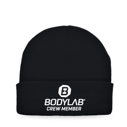Bodylab Beanie schwarz Bodylab24. Angenehm beim Outdoortraining, beim Radfahren oder allgemein in der Freizeit – unsere neue schwarze Beanie-Mütze mit Bodylab Logo und Schriftzug CREW MEMBER. Angenehm tragbare Beanie-Mütze in schwarz mit Bodylab Logo und CREW MEMBER Schriftzug vorne.