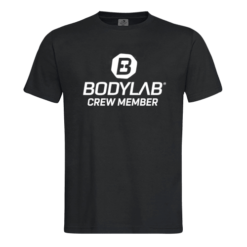 Bodylab24 T-Shirt schwarz Bodylab24. Dein T-Shirt für die nächste Trainingseinheit Das schwarze Kurzarm-Shirt (Zusammensetzung: 90% Baumwolle / 10% Viskose) hat vorne in Brusthöhe das Bodylab24 Logo aufgedruckt und den Schriftzug CREW MEMBER. Der Halsausschnitt ist rund.Dein Trainingsbegleiter für intensive Trainingseinheiten In- und Outdoor.Es ist in den Größen S – XXL zu haben – für Trainings-Neulinge und Profis gleichermaßen. Welche Größe brauche ich? Hier ein paar Hilfsdaten – 160cm bis 170cm und ca. 55-65 kg = Größe S (Brustumfang 50cm/Länge (Höhe) 69cm) – 170cm bis 180cm und 70kg bis 80kg = Größe M (Brustumfang 53cm/Länge (Höhe) 71cm) – 170cm bis 180cm und 80kg bis 90kg = Größe L (Brustumfang 56cm/Länge (Höhe) 73cm) – Über 180cm und über 90kg = Größe XL (Brustumfang 59cm/Länge (Höhe) 75cm) – Über 185cm und über 105kg = Größe XXL (Brustumfang 62cm/Länge (Höhe) 77cm) Unser neues CREW MEMBER T-Shirt in schwarz – mit Bodylab Logo auf Brusthöhe – für Deine nächste Trainingseinheit im Gym oder Outdoor.