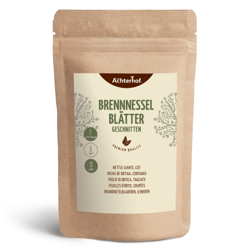 Brennnesselblätter geschnitten vom Achterhof. Fein geschnittene Brennnesselblätter Das picksende Unkraut in der Küche Die eigentliche Brennnessel ist nur eine der Gattungen, die unter dem Familiennamen „Brennnesselgewächs“ geführt wird. In Europa sind etwa 45 Arten dieser Gattung anzutreffen. Da Lebensraum, Bodenqualität und Art der Brennnessel für das Wachstum sehr entscheidend sind, erreichen die unterschiedlichen Sträucher Größen von 10 bis 250 cm. Ihre kleinen und oft unbemerkt gebliebenen Blüten sind meist blassweiß, manchmal hellviolett. Bekannt ist die Pflanze aber vor allem für ihre Blätter, welche einen brennenden Schmerz bei Kontakt mit Haut auslösen und daher auch ihren Namen hat. Oma’s Tipp: Brennnesselblätter Brennnesselblätter sind ein besonderer Tipp unserer Großmütter, denn diese benutzen die an Waldrändern und auf Wiesen wuchernde Pflanze. Ob die Brennnesselwurzel fein geschnitten im Tee, die Samen als knusprig-geröstete Note im Salat oder die frischen Blätter als Spinat-Alternative. Vor allem die Blätter sind sehr beliebt in der Küche, werden zu Sahnesaucen, Currys, Tees und vielem mehr dazu gegeben. Ein aufgegossener Brennnesseltee ist beispielsweise ein leckerer und wärmender Tee, der geschmacklich als typisch krautig mit leichter Spinatnote zu beschreiben ist. Probiere es doch mal aus und kreiere Dir anstelle von Spinatknödeln, ganz besondere Brennnesselknödel, die Dich mit ihrer leichten Kräuternote verzaubern werden. Brennnesselknödel: Das Rezept Brennnesselknödel, geschwenkt in brauner Butter. Was gibt es besseres? Für circa 4 Portionen brauchst du folgende Zutaten: 150 g geschnittenes, getrocknetes Brot ¼ l Milch 100g getrocknete vom Achterhof Brennnesselblätter 2 EL Parmesan 2 Eier Salz & Pfeffer 2 Knoblauchzehen 1 Zwiebel Zubereitung: 1. Die Milch leicht erhitzen und zum einweichen über das getrocknete und geschnittene Brot geben. 2. Bei getrockneten Brennnesselblättern, die Blätter mit sprudelnd, kochendem Wasser aufweichen, abgießen und beiseite stellen. 3. Brennnesselblätter, Salz, Pfeffer, Parmesan, Eier, Zwiebeln und Knoblauch zu der Brot-Milch-Masse geben und alles gut mit den Händen vermengen. 4. Aus der Masse anschließend Knödel formen und in kochendem Salzwasser circa 10 Minuten ziehen lassen 5. Mit brauner Butter oder Salat anrichten und genießen! Auch wenn man der Brennnessel ungern im Freien begegnet, in der Küche hat sie sich schon lange zu einem beliebten Gewürz etabliert. Dank des frischen, kräuterähnlichen Geschmacks eignen sich die geschnittenen Brennnesselblätter ideal, um sie wie Spinat zu kochen oder für eine leckere Brennnesselsuppe. Doch nicht nur das, auch bei Hobbygärtnern ist die Brennnesseljauche ein beliebter Dünger und sorgt für einen nahrhaften Pflanzenboden.