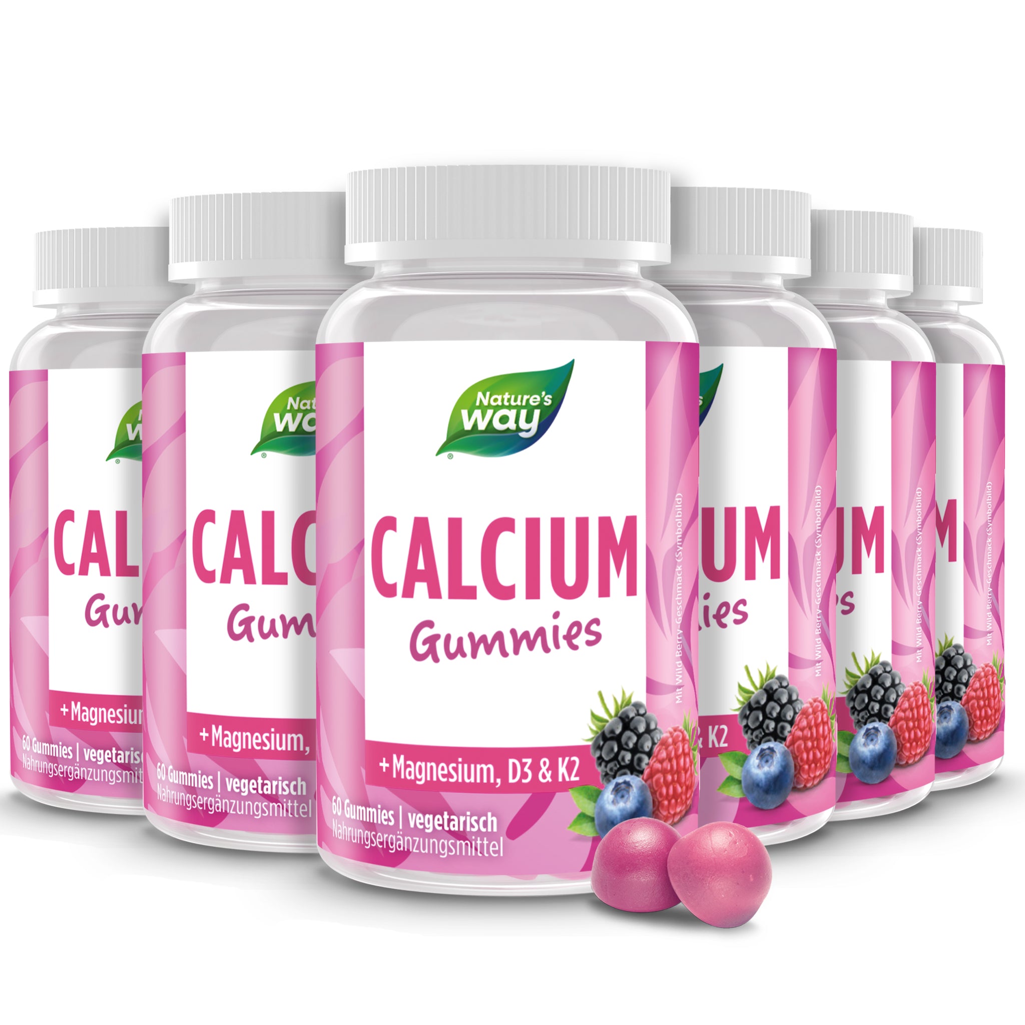 Zwei Calcium Gummies täglich versorgen dich mit 500 mg hochkonzentriertem Calcium für gesunde Knochen, Zähne und eine normale Muskelfunktion.¹²³ Durch die clevere Kombination aus Calcium, Magnesium, Vitamin D3 und K2 kann der Körper, dank dem „Einbauhelfer“ Vitamin D3⁴, Calcium besser aufnehmen und verarbeiten. Vitamin D unterstützt zusätzlich deine Immunabwehr.⁵ Da Calcium für die Erhaltung normaler Knochen benötigt wird, sind die Gummies für die ganze Familie und besonders für Kinder im Wachstumsalter ab 4 Jahren geeignet.⁶. – 60 Gummies mit Wild Berry Geschmack. – clevere Kombi: Calcium & Magnesium + Vitamin D3 + Vitamin K2. – vegetarisch und frei von Gelatine, Gluten und Laktose. – für Kinder ab 4 Jahren geeignet. Durch den Wild Berry Geschmack und die fruchtig-softe Konsistenz, sind die Gummies leichter einzunehmen als beispielsweise Tabletten. Einfach lecker zwischendurch!. ¹Calcium wird für die Erhaltung normaler Knochen benötigt. ²Calcium trägt zur normalen Muskelfunktion bei. ³Calcium wird für die Erhaltung normaler Zähne benötigt. ⁴Vitamin D trägt zu einer normalen Aufnahme/Verwertung von Calcium und Phosphor bei. ⁵Vitamin D trägt zu einer normalen Funktion des Immunsystems bei. ⁶Calcium trägt zu normalem Wachstum und normaler Knochenentwicklung von Kindern bei