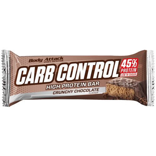 Carb Control Riegel von Body Attack mit Choco-Crunch Geschmack in der 0.1KG Packung. Carb Control von Body Attack Body Attack macht den Traum vom perfekten Schokoriegel wahr. Der Carb Control sieht aus wie ein Schokoriegel, ist mindestens genauso lecker, aber viel gehaltvoller. Top-Nährstoffe und herausragender Geschmack: Der Eiweißriegel überzeugt mit einem hohen Proteingehalt, der langanhaltend sättigt. Das ist in Diät- oder Definitionsphasen besonders wichtig. Als Proteinquellen wurden Milch- und Molkeneiweißisolat gewählt. Hochwertige Proteine brauchst du zum Muskelaufbau unbedingt. Kohlenhydrate sind natürlich auch dabei. Für den kleinen Energieschub zwischendurch. Der ideale Snack zur Diät. Der perfekte Ersatz für deinen Proteinshake. Der optimale Fitnessstudio-Begleiter. Der Genuss für jede Gelegenheit. Umschreibungen für unseren Proteinriegel gibt es viele. Verständlich. Die Vorteile liegen auf der Hand. Die Riegel sind lange haltbar, stillen Heißhungerattacken und sind einfach zu transportieren. Zack in die Tasche und immer dabei. Zudem liefern sie wertvolles Eiweiß für deine Muskeln. Und wer behauptet jetzt noch, ohne die kleinen praktischen Proteinspender auszukommen? Proteinriegel können nicht pauschal als gesunde Schokoriegel bezeichnet werden. Viele Riegel weisen wie handelsübliche Schokoriegel hohe Zuckermengen auf. Grundsätzlich gilt: Je niedriger der Zuckergehalt, desto wertvoller der Riegel. Auch die Proteinquellen spielen bei der Qualität von Eiweißriegeln eine entscheidende Rolle. Eiweißriegel aus Whey-Protein, speziell Isolat, sind besonders hochwertig. Das hat mit der biologischen Wertigkeit zu tun. Proteine mit einer hohen biologischen Wertigkeit lassen sich vom Körper besser in körpereigenes Protein umwandeln und damit nutzen. Wenn du dir die lange Suche nach einem gesunden Proteinriegel sparen willst, greif zu Carb Control. Der Riegel enthält 45% Protein aus hochwertigem Milcheiweiß, Molkeneiweißisolat sowie Sojaeiweißisolat. Auf zusätzlichen Zucker und unnötige Kalorien wird verzichtet. Seine Süße erhält der Carb Control von dem Zuckeraustauschstoff Maltit. Gegen Carb Control können herkömmliche Schokoriegel einpacken. Body Attack – Carb Control 15 x 100 g ist ein kompakter Schokoladen-Riegel mit wenig Zucker.