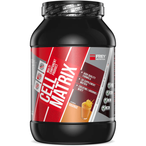 Cell Matrix Pulver von FREY Nutrition. FREY Nutrition – Cell Matrix Cell Matrix ist das perfekte Allround-Produkt von FREY Nutrition. Es vereint wichtige Nährstoffe und hochwertige Aminosäuren mit essentiellen Mineralstoffen und Vitaminen in einem ideal abgestimmten Verhältnis. Außerdem erhöhen nicht nur die beigefügten Substanzen wie Creatin, Glutamin und die D-Ribose die Qualität des Produktes, sondern vor allem das enthaltene hochwertige Whey Protein Isolat. Vorteile ultrafiltriertes Molkenprotein-Isolat (22 %) ohne Einfachzucker mit Maltodextrin DE 12 gute Löslichkeit Cell Matrix (2000g) hat die PZN 10533602. CELL MATRIX – Die ultimative All-in-One-Formel für Sportler CELL MATRIX kombiniert hochwertige Aminosäuren, essenzielle Mineralstoffe und Vitamine in einem perfekt abgestimmten Verhältnis. Durch die Zugabe von Creatin, Glutamin und D-Ribose wird die Produktqualität weiter optimiert. Zusätzlich enthält CELL MATRIX hochwertiges Whey-Protein-Isolat, das den Muskelaufbau unterstützt und zur Erhaltung der Muskulatur beiträgt. Diese umfassende Nährstoffkombination macht es zu einer optimalen Wahl für leistungsorientierte Sportler. Maximale Unterstützung nach dem Training Wer ein Produkt sucht, das zahlreiche essenzielle Nährstoffe in einer einzigen Formel vereint, ist mit CELL MATRIX bestens versorgt. Aufgrund seiner durchdachten Zusammensetzung eignet es sich besonders als Post-Workout-Nutrition und wird von vielen Athleten direkt nach dem Training eingenommen. Vitamin B6 unterstützt das Immunsystem Vitamin C trägt dazu bei, die Zellen vor oxidativem Stress zu schützen Zink unterstützt …