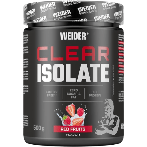 Clear Isolate Pulver von Weider mit Red Fruits Geschmack in der 0.5KG Packung. Die leichte Löslichkeit macht es einfach, sich eine köstliche Portion dieser fruchtig-frischen Geschmacksvielfalt zu gönnen. Entdecken Sie jetzt das Vergnügen eines erfrischenden Proteindrinks, der höchste Qualität und Geschmack vereint. Clear Isolate von Weider Weiders Clear Isolate zeichnet sich durch seine Abgrenzung von herkömmlichen Molkenproteinen aus, die oft in milchbasierten Geschmacksrichtungen wie Vanille, Schokolade und Erdbeere erhältlich sind. Dieses erfrischende Proteingetränk besticht durch seine fruchtig-frische Geschmacksvielfalt und ist in den Sorten Red Fruits, Blue Raspberry, Peach Ice Tea und Watermelon erhältlich. Weiders Clear Isolate ist nicht nur ein erfrischender Proteindrink, sondern auch eine erstklassige Wahl für ernährungsbewusste Individuen. Mit einem maximal konzentrierten, hochwertigen Molkenproteinanteil und der Gewissheit, dass es laktosefrei ist, bietet dieses Produkt eine exzellente Proteinquelle.