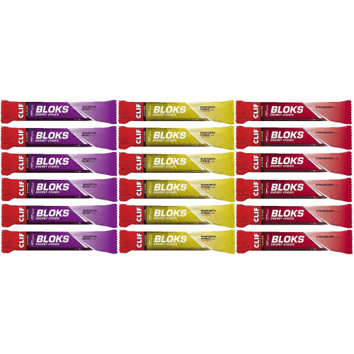 Clif Bloks Energy Chews Mixed Clif. Shot Bloks von Clif Clif Shot Bloks sind kleine Energie-Würfel, die dank ihrer geleeartigen Konsistenz einfach zu kauen sind. Der beste Energiekick während des Trainings oder Wettkampfs! Die Bloks werden hauptsächlich von Leistungssportlern genommen. Egal ob Radrennfahrer, Marathonläufer, Mountainbiker, Triathleten – jeder, der sich im Leistungssport bewegt, braucht den Instant-Energiekick, den die Clif Shot Bloks liefern. Finde deinen Favoriten in der praktischen Mixed Boxed und teste verschiedene Sorten für mehr Abwechslung! VON SPORTLERN FÜR SPORTLER KREIERT: CLIF BLOKS Energy Chews liefern einfache, leicht zu kauende Kohlenhydrate für Training und Wettkampf! Super einfach auch während des Laufens zu verzehren! Die leicht zu öffnende Verpackung und die weiche, kaubare Textur sorgen dafür, dass du dich ausschließlich auf deine Leistung konzentrieren kannst.
