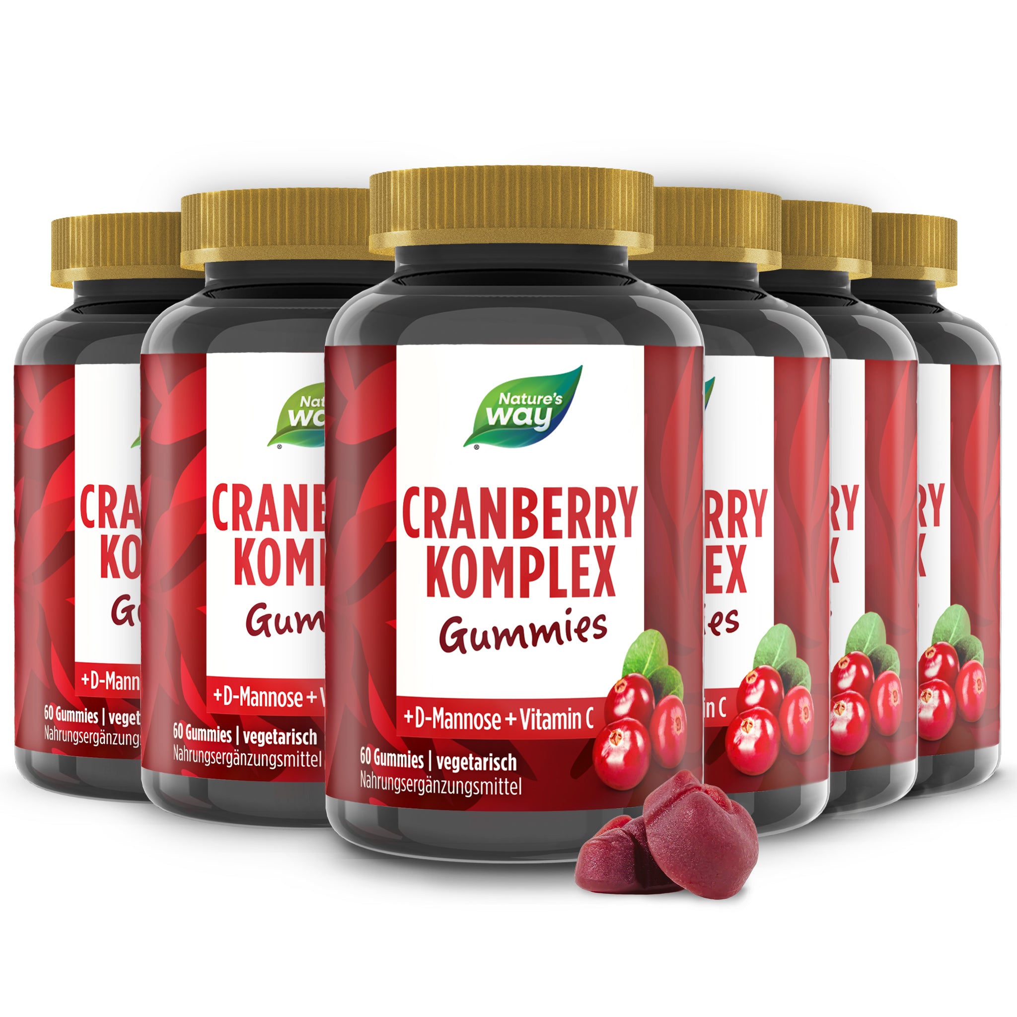Ob nach dem Schwimmbad, einem Tag am See im kühlen Wasser, oder einfach zuhause – die Nature’s Way Cranberry Gummies sind dein täglicher Begleiter. Besonders wertvoll für Frauen.. Perfekte Kombination: Unsere Vitamin C Cranberry Komplex Gummies kombinieren Cranberry Pulver in einem hochwertigen 3in1 Komplex mit D-Mannose und Vitamin C. Cranberry enthält Proanthocyanidine.. – 60 Vitamin C Cranberry Komplex Gummies. – Cranberry-Geschmack. – Vitamin C für dein Immunsystem¹. – Vegetarisch und frei von Gelatine, Gluten und Laktose. ¹Vitamin C trägt zu einer normalen Funktion des Immunsystems bei. 2 Gummies enthalten bereits 90 mg Vitamin C.