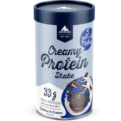 Creamy Protein Shake Pulver von Multipower mit Cookies & Cream Geschmack in der 0.42KG Packung. Der Creamy Protein Shake von Multipower Die einzigartige Formel mit verschiedenen Proteinkomponenten und angereichertem Vitamin B6 fördert die Proteinsynthese. Genieße schnelle Eiweißversorgung durch Molkeneiweiß nach dem Training, während Casein für langanhaltende Versorgung sorgt, perfekt auch in Hungerphasen. Vielseitig als Post-Workout-Getränk oder Snack anwendbar. Wähle jetzt zwischen 6 köstlich cremigen Geschmacksrichtungen. Alle Sorten werden in innovativen Papierdosen geliefert, die ganz einfach im Papiermüll entsorgt werden können. Entdecke den innovativen Nachfolger von unserem Formula 80, der „Creamy Protein Shake“ – das ultimative Proteinpulver für deine Fitnessziele. Mit beeindruckenden bis zu 34g Protein pro Portion unterstützt er effektiv Muskelaufbau und Regeneration.