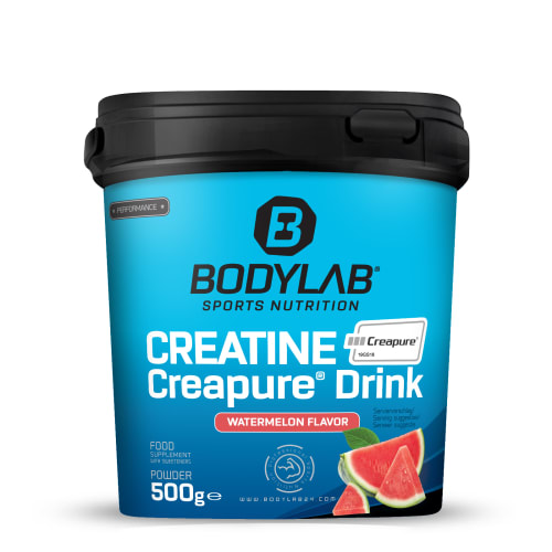 Creatine Creapure® Drink Pulver von Bodylab24 mit Wassermelone Geschmack in der 0.5KG Packung. Creatine Creapure® Drink – jetzt neu bei Bodylab24. Ein lecker fruchtiges Getränk zur einfachen Kreatinversorgung Kreatin (Creatine/Creatin) gibt es in unterschiedlichen Verbindungen und gehört sowohl zu den beliebtesten als auch den meistgetesteten Sport-Supplements. Mittlerweile ist Creatine daher nicht mehr nur eine Geheimwaffe, wenn es um eine Kraft-, Muskelaufbau und Steigerung der Leistungsfähigkeit geht! Creatine wird zu den Aminosäuren und ihren Verbindungen gezählt und setzt sich aus Arginin, Glycin und Methionin zusammen. Es ist direkt an der Energieversorgung der Muskeln beteligt und die Europäische Behörde für Lebensmittelsicherheit (EFSA) hat für Kreatin folgende Aussage und Wirkungsweise offiziell anerkannt: 3g Creatine pro Tag erhöhen die körperliche Leistung bei Schnellkrafttraining im Rahmen kurzzeitiger intensiver körperlicher Betätigung. Creapure® stellt dabei eine der hochwertigsten Kreatinmonohydrate dar und ist besonders gut für den Körper nutzbar. Warum Creatine Creapure® Drink? Der fruchtige Creatine Creapure® Drink kann als Durstlöscher zwischendurch nicht nur für Erfrischung sorgen, sondern hat auch noch eine gute Portion Kreatin mit im Gepäck. Jede 5g Pulverportion gemischt mit 250ml Wasser versorgt Dich mit 4g bestem Kreatinmonohydrat in Creapure® Qualität. Gesüßt ist kalorienarm mit Süßstoff und es sind Aromen für leckeren Wassermelonen oder Fruchtmix Geschmack zugefügt. Es sind weiter keine unnötigen Füllstoffe enthalten. So sorgt der Creatine Creapure® Drink nicht nur für geschmackliche Abwechslung zwischendurch, sondern unterstützt Deine hochintensiven Aktivitäten mit kurzzeitiger Belastung. Beispiele hierfür sind Sprints, Krafttraining oder HIT Training. Unterstütze Deinen Muskelaufbau effektiv und fördere Energie und Explosivität beim Training ganz einfach und problemlos. Creatine Creapure® Drink für jeden? Ganz allgemein kann jeder sportlich Aktive den Durstlöscher nutzen, wenn er seine Kreatinversorgung über den Tag anreichern möchte. In der Regel nutzen Sportler eine Nahrungsergänzung mit Kreatin, wenn Muskel- und Masseaufbau zu den Trainingszielen gehören und wenn sie ihrer Schnellkraft etwas auf die Sprünge helfen wollen. Auch im Kraftsport und Bodybuilding zählt Kreatin zu den absoluten Standardsupplements und wird sowohl von Hobby- als auch ambitioniert trainierenden Athleten verwendet. Das Produkt ist nicht für Kinder und Jugendliche unter 18 Jahren geeignet. NEUER Drink bei Bodylab24. Einfache Versorgung mit besonders hochwertigem Creatine Creapure® im neuen Creatine Creapure® Drink. Einfach Pulver und Wasser mischen und ein fruchtiges Getränk zwischendurch gönnen und damit gleichzeitig zur effektiven Kreatinversorgung beitragen.Eine echte Erfolgsformel für mehr Energie, Kraft und unterstützend beim Muskelaufbau. Ideal für alle Athleten! Kreatin sorgt dabei wissenschaftlich nachgewiesen zu einer Leistungssteigerung ab einer Einnahme von 3g reinem Kreatin am Tag.