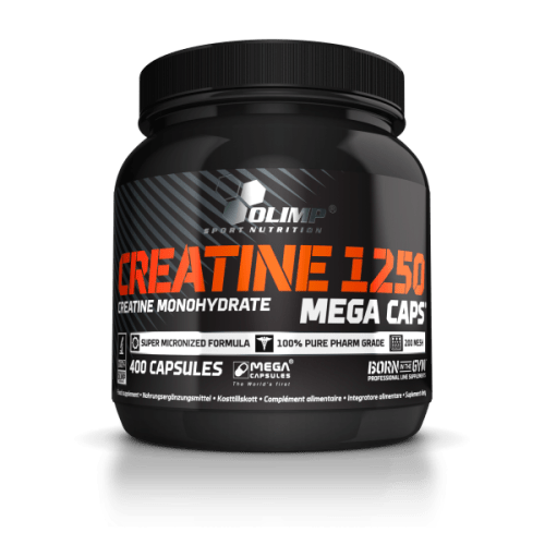 Creatine Mega Caps 1250 Kapseln von Olimp mit Neutral Geschmack in der 0.56KG Packung. Was sind OLIMP Creatin Mega Caps und was bewirken sie? OLIMP CREAPURE MONOHYDRATE ist eine mikronisierte Kreatinform. Das Produkt liefert Creatinmonohydrat, wie es auch im Körper vorkommt. Im Muskelgewebe geht verfügbares Creatin in Phosphocreatin über. Kreatin erhöht die körperliche Leistung bei Schnellkrafttraining im Rahmen kurzzeitiger intensiver körperlicher Betätigung. Das Präparat ist für Erwachsene, körperlich aktive Personen und Leistungssportler bestimmt. Bis zu zwei Portionen pro Tag einnehmen (1 Kapsel entspricht eine Portion). Nur trainings- oder wettkampfbedingt verwenden. Es kann eine Gewichtszunahme erfolgen. Für Kinder und Jugendliche nicht geeignet. Es wird empfohlen, das Produkt 2-3 Monate lang zu verzehren, dann eine Pause für 1-2 Monate zu machen und wenn nötig nach der Pause zu wiederholen. Außerhalb der Reichweite von Kindern aufbewahren. Verkehrsbezeichnung: Diätetisches Lebensmittel für Sportler Hochwertiges Kreatinmonohydrat!