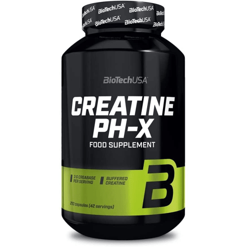 Creatine PH-X Kapseln von BioTech USA. Bio Tech USA – Creatin pH-X 210 Kapseln Bio Tech USA Creatin pH-X sind Kapseln mit hoch dosiertem gepufferten Kreatin Monohydrat Pulver. Durch die Stabilität von Kre-Alkalyn wird der Zerfall in Creatinin verhindert und gewährleistet gleichzeitig eine optimale Nutzung des Kreatin durch die Muskeln. Dadurch hat Creatin pH-X in kurzer Zeit Einzug in immer mehr Studios und Ernährungspläne von ambitionierten Bodybuildern gefunden. Dieses Produkt ist ideal für Bodybuilder, Powerlifter und Kraftsportler sowie für Fitnessathleten aller Art. Bio Tech USA Creatin pH-X: Creatin Monohydrat Reine Zutaten Schnelle Aufnahme durch den Körper Bodybuilding Profi Supplement Praktische Kapselform Nahrungsergänzung kaufen bei Bodylab24! immer den besten Preis alles am Lager Blitzlieferung 1-2 Tage zuverlässiger Kundenservice über 15 Jahre Erfahrung Hochdosiertes, gepuffertes Kreatinmonohydratpulver!