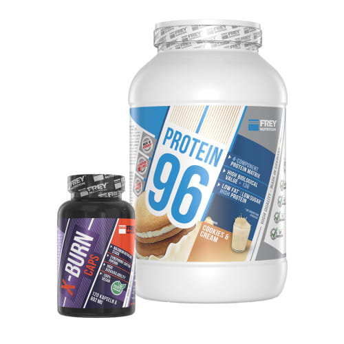 Definition Duo Pulver von FREY Nutrition. Bodylab – Dein Experte für Muskelaufbau, Fitness, Abnehmen und gesunde Ernährung. Wir sind der führende Online Shop für Supplements und Sportnahrung. Egal ob Proteinpulver für Deinen Eiweißshake oder Proteinriegel: Wenn Du Eiweiß kaufen willst, findest Du in unserem Protein Shop alles was das Herz begehrt. Mit Eiweißprodukten unserer Eigenmarke Bodylab24 erhältst Du höchste Qualität zu unschlagbaren Preisen. Natürlich findest Du bei Bodylab24 auch eine umfangreiche Auswahl hervorragender Sportnahrung anderer Hersteller. Sämtliche angebotenen Produkte mussten uns vor der Listung von ihrer einwandfreien und guten Qualität sowie einem fairen Preisleistungsverhältnis überzeugen. Definition Duo – Fettabbau & Muskelerhalt in perfekter Kombination! Mit dem Definition Duo von Frey Nutrition bringst du deine Körperdefinition auf das nächste Level! Dieses Bundle kombiniert hochwertiges Eiweiß mit einem effektiven Fatburner, um den Fettabbau zu unterstützen und gleichzeitig deine Muskeln zu erhalten. Protein 96 – Ein hochwertiges Mehrkomponenten-Protein mit langsam verdaulichen Proteinen für eine langanhaltende Muskelversorgung und effektiven Muskelschutz. X-Burn – Ein leistungsstarker Fatburner mit sorgfältig ausgewählten Inhaltsstoffen zur Unterstützung des Stoffwechsels und der Fettverbrennung. Ideal für alle, die Körperfett reduzieren und ihre Muskulatur bestmöglich erhalten möchten!