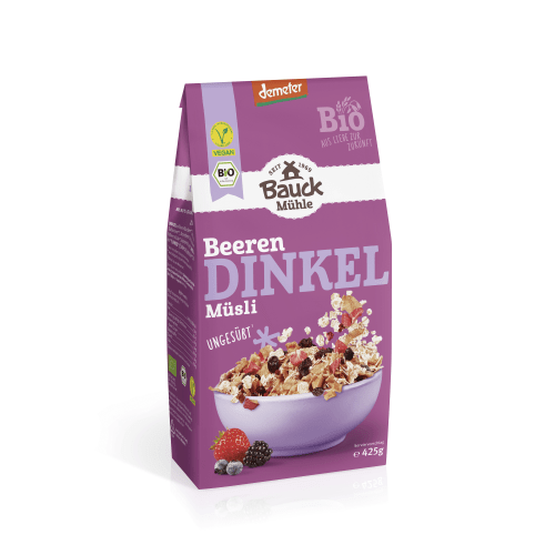 Demeter Dinkelmüzli Beerenzart Bauckhof mit Beerenzart Geschmack in der 0.425KG Packung. Dinkel-Müzli Knusperzart von Bauckhof? Schon die legendäre Hildegard von Bingen schwor auf Dinkel. Denn der ist ein echter Allrounder in Sachen wichtiger Nähr- und Vitalstoffe. Dinkel-Müzli Knusperzart von Bauckhof enthält nur das Beste dieses Korns. Es kann unkompliziert in gesunde, ausgewogene Ernährung integriert werden und ist zudem richtig lecker. Kontrolliert-biologischer Anbau gewährleistet die Erhaltung aller Wertstoffe. Dinkel-Müzli Knusperzart von Bauckhof ist für alle Menschen empfehlenswert, die ein gesundes und leichtes Frühstück zu schätzen wissen. Kinder lieben es! Dinkel-Müzli Knusperzart von Bauckhof kann mit Milch, Joghurt, Quark oder frischen Früchten zum Frühstück oder zwischendurch genossen werden. Eco control number: DE-ÖKO-007 Mit Dinkel in den Tag starten!
