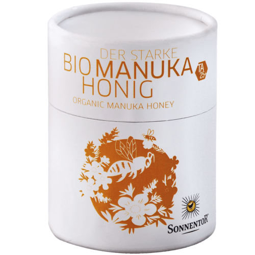 Der starke Bio Manuka Honig Sonnentor. Der starke Bio Manuka Honig von Sonnentor Stark! Schon die Maori, die Ureinwohner Neuseelands, wussten um die außergewöhnlichen Eigenschaften des Manuka Strauches. Der Honig entsteht aus der Südseemyrte, dem Manukabaum. Er ist kräftig-würzig im Geschmack, riecht intensiv harzig und leuchtet in einem zarten Karamellbraun. Leicht minzig im Abgang verzaubert er alle Sinne. Tipp unseres Imkers: Manukahonig am besten auf nüchternen Magen, pur oder in lauwarmem Wasser oder Milch aufgelöst einnehmen. Niemals mit heißer Flüssigkeit mischen. TA-Faktor (Total Activity): 25+ Eco control number: AT-BIO-301 Der gesunde Manuka Honig aus Neuseeland.