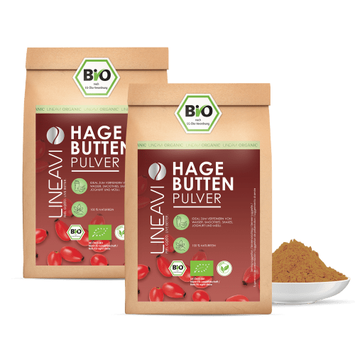 Doppelpack: Hagebuttenpulver bio Pulver von LINEAVI. Die Hagebutte ist die leuchtend rote Frucht verschiedener Wildrosenarten, besonders bekannt durch die Heckenrose (Rosa canina). Schon seit Jahrhunderten wird sie in der Volksheilkunde geschätzt – und das nicht ohne Grund: Hagebutten sind reich an Vitamin C, enthalten wertvolle sekundäre Pflanzenstoffe wie Flavonoide sowie natürliche Ballaststoffe und Fruchtsäuren. Durch schonende Trocknung und feines Vermahlen entsteht Hagebuttenpulver – eine praktische Form, um die Kraft der Hagebutte in den Alltag zu integrieren. Es überzeugt mit einem angenehm säuerlich-fruchtigen Geschmack und eignet sich ideal zum Verfeinern von Müsli, Smoothies, Joghurts oder Shakes. In hochwertiger Bio-Qualität ist Hagebuttenpulver frei von Zusätzen und stammt aus kontrolliert ökologischem Anbau. Ob als natürlicher Vitamin-C-Lieferant oder einfach als fruchtige Ergänzung – Hagebuttenpulver ist eine vielseitige Zutat aus der Natur, viel zu bieten hat. Unser Bio-Hagebuttenpulver ist eine wahre Schatztruhe der Natur. Die leuchtend rote Frucht aus kontrolliert biologischem Anbau überzeugt mit ihrem säuerlich-fruchtigen Geschmack und eignet sich ideal zum Verfeinern von Müsli, Joghurt, Säften oder Smoothies. Ein natürlicher Begleiter für einen frischen Start in den Tag – in bester Bio-Qualität.
