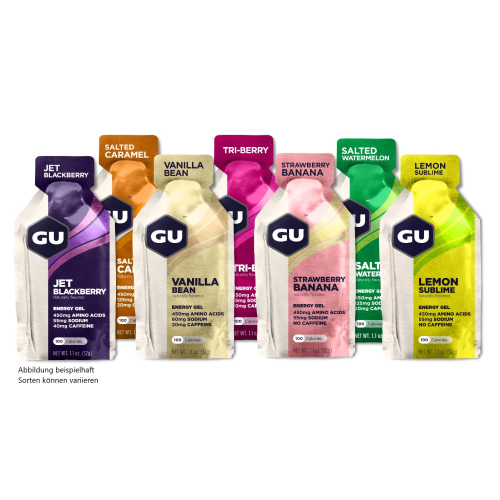 Energy Gel 7er Testpaket GU Energy Labs mit Gemischt Geschmack in der 0.224KG Packung. Was sind GU Energy Gels und wie wirken sie? GU Energy Gels versorgen Athleten aller Sportarten und Leistungsstufen mit hochwertiger, leicht verdaulicher und langanhaltender Energie. Jede Portion Gel bietet eine ausgewogene Mischung aus Kohlenhydraten, Elektrolyten und Aminosäuren. Nicht enthalten sind dagegen unnötige Mengen an Vitaminen, künstlichen Geschmacksstoffen und sonstigen Zusätzen, die nicht für die Versorgung während des Sports gebraucht werden. GU ist einfach einzunehmen, schmeckt gut und bringt genau das mit, was für Höchstleistungen notwendig ist. Was macht die GU Gels besonders? Neben dem einzigartig leckeren und natürlichen Geschmack heben sich GU Gels durch ihre Inhaltstoffe und deren Zusammensetzung hervor. Alle Inhaltsstoffe wurden perfektioniert um dich nachhaltig mit Energie zu versorgen – ohne Schnickschnack. Wie viele GU Gels brauche ich für meinen Sport? Die Menge an GU Gels die du benötigst hängt von der Art und Dauer der sportlichen Aktivität ab. Bei einer mittleren Intensität empfehlen sich 1-2 Gels pro Stunde, bei besonders hoher Intensität können 2-3 Gels pro Stunde genutzt werden. Zur Einnahme der Gels mindestens 150ml Flüssigkeit trinken. GU for it!
